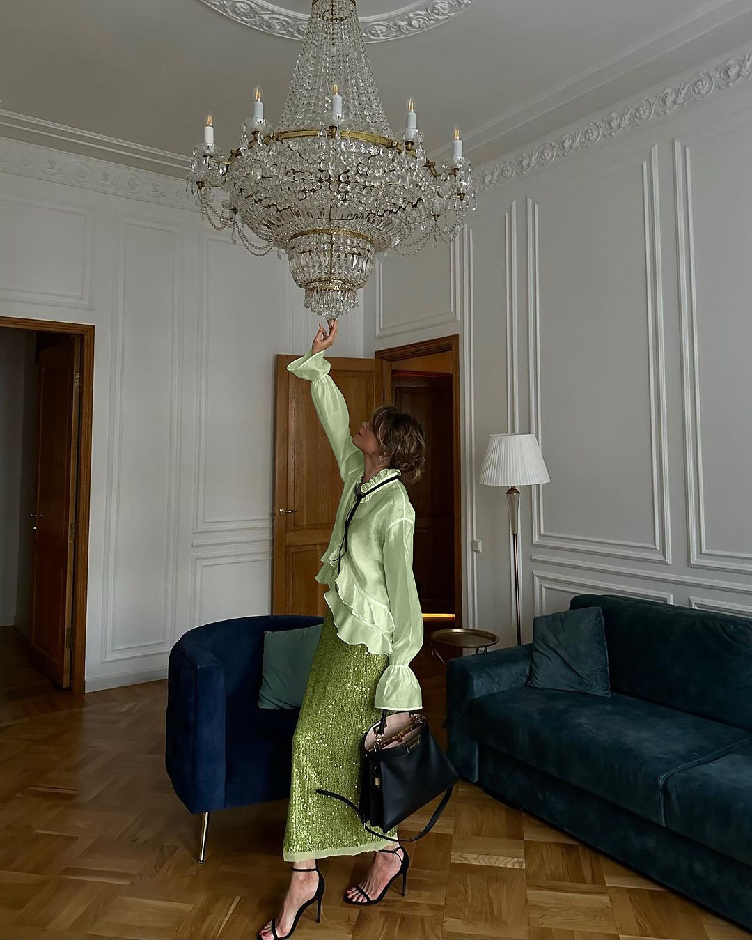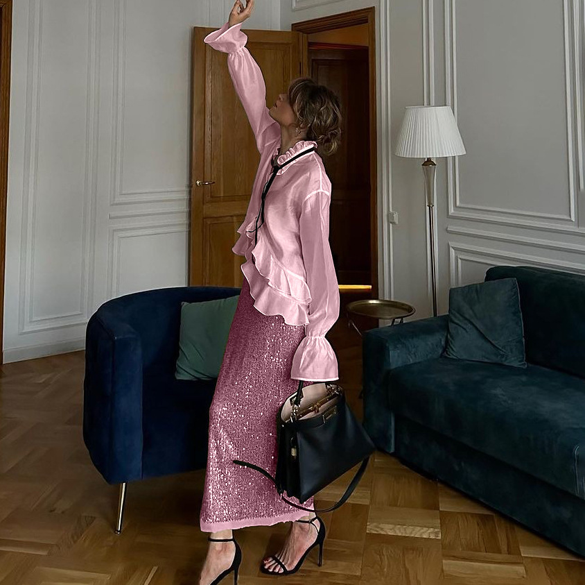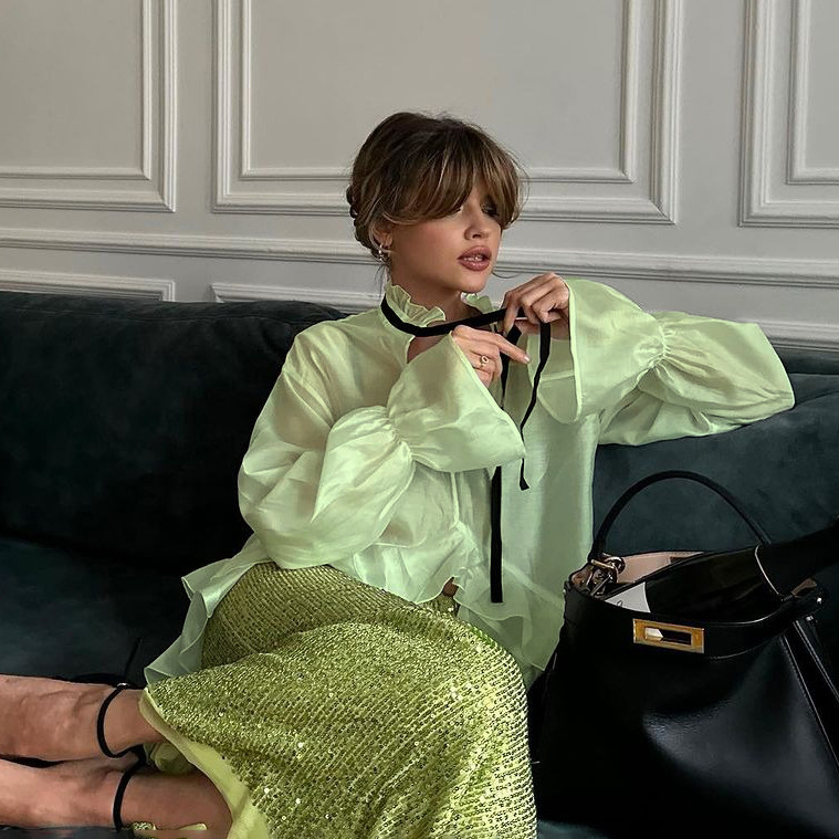 유럽과 미국 여성 패션 섹시한 시스루 블라우스 탑 2025 여름 신상 플레어 슬리브 디자인 프렌치 셔츠스토어 가기