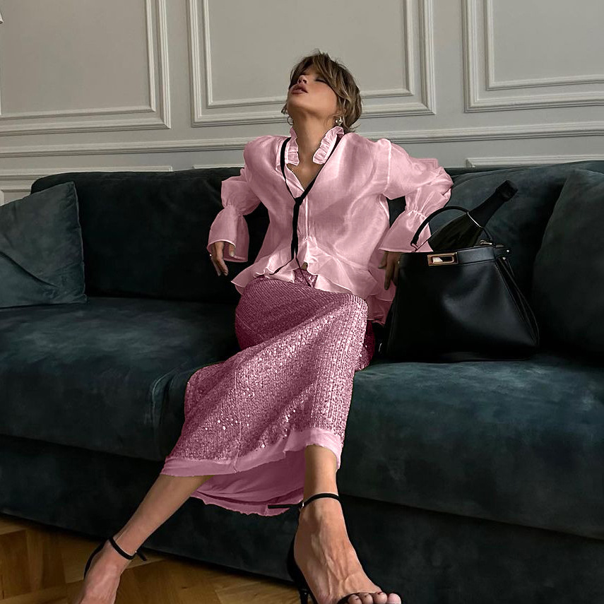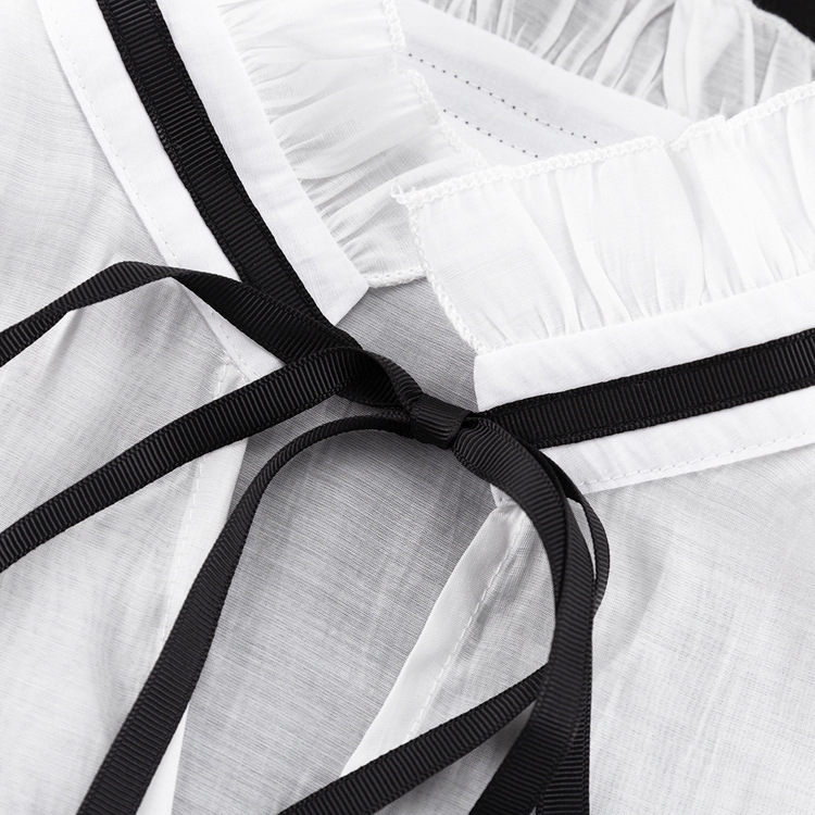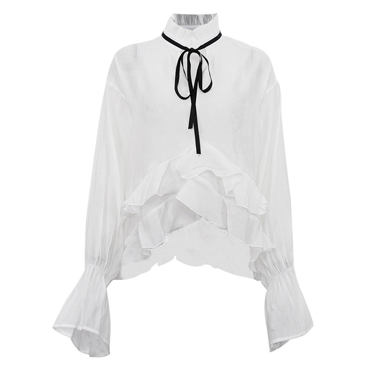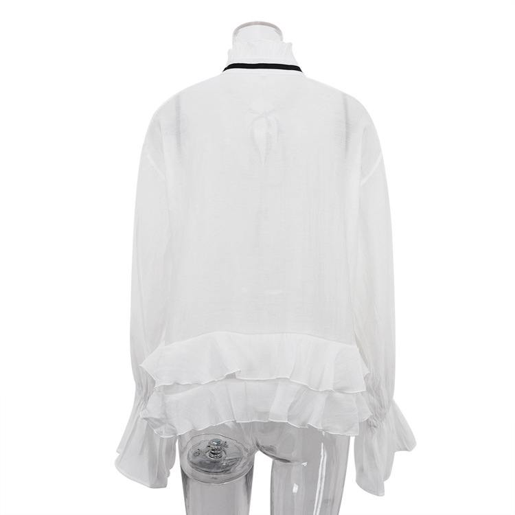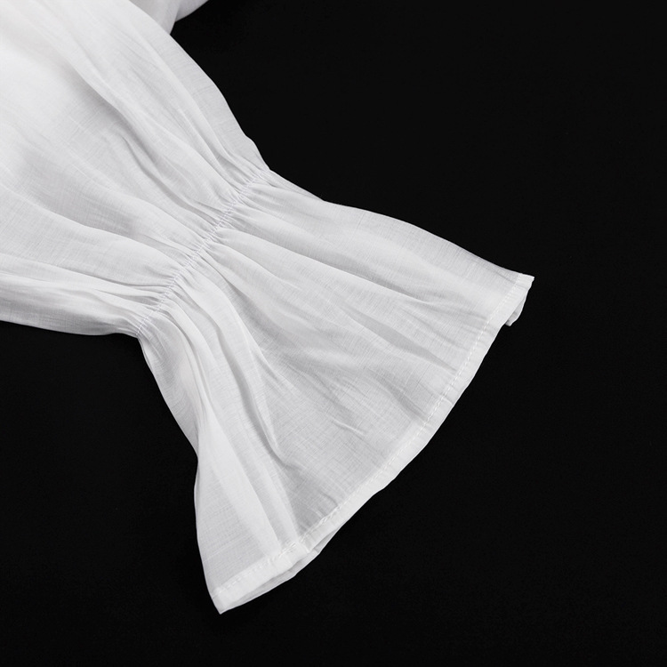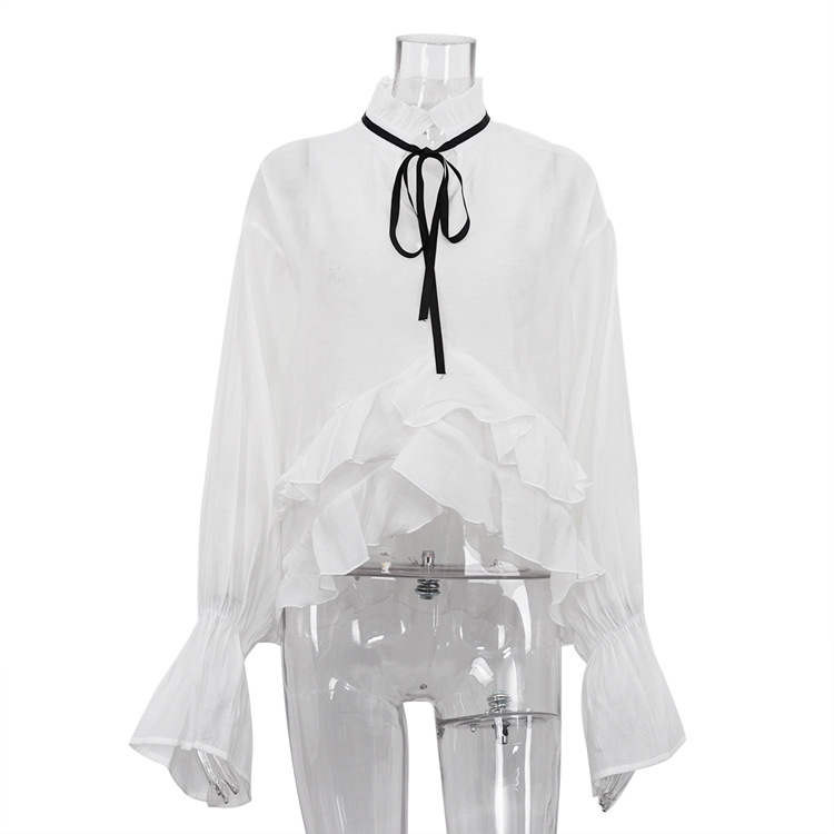 유럽과 미국 여성 패션 섹시한 시스루 블라우스 탑 2025 여름 신상 플레어 슬리브 디자인 프렌치 셔츠
