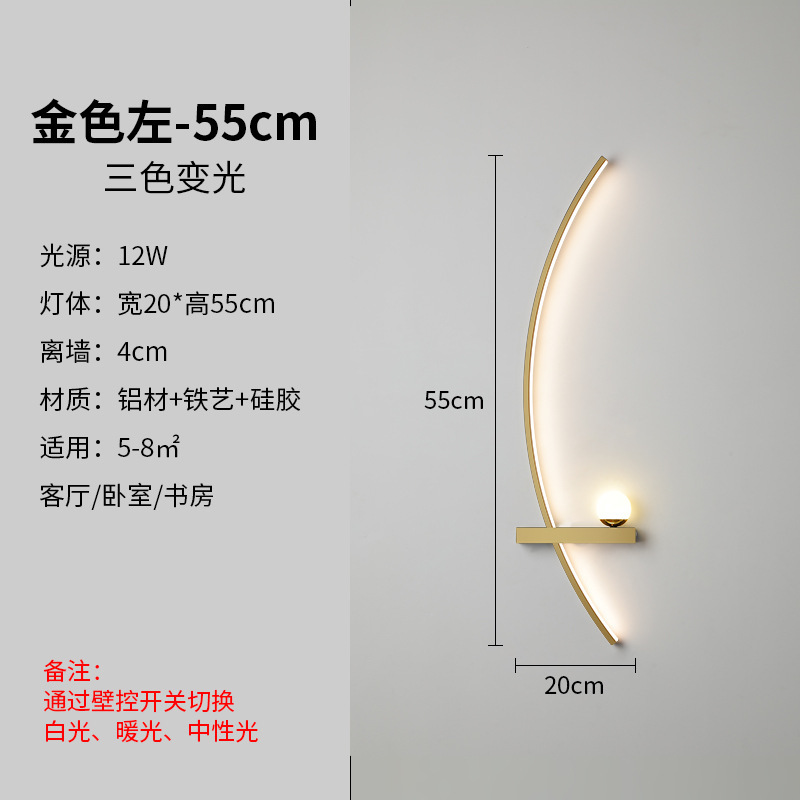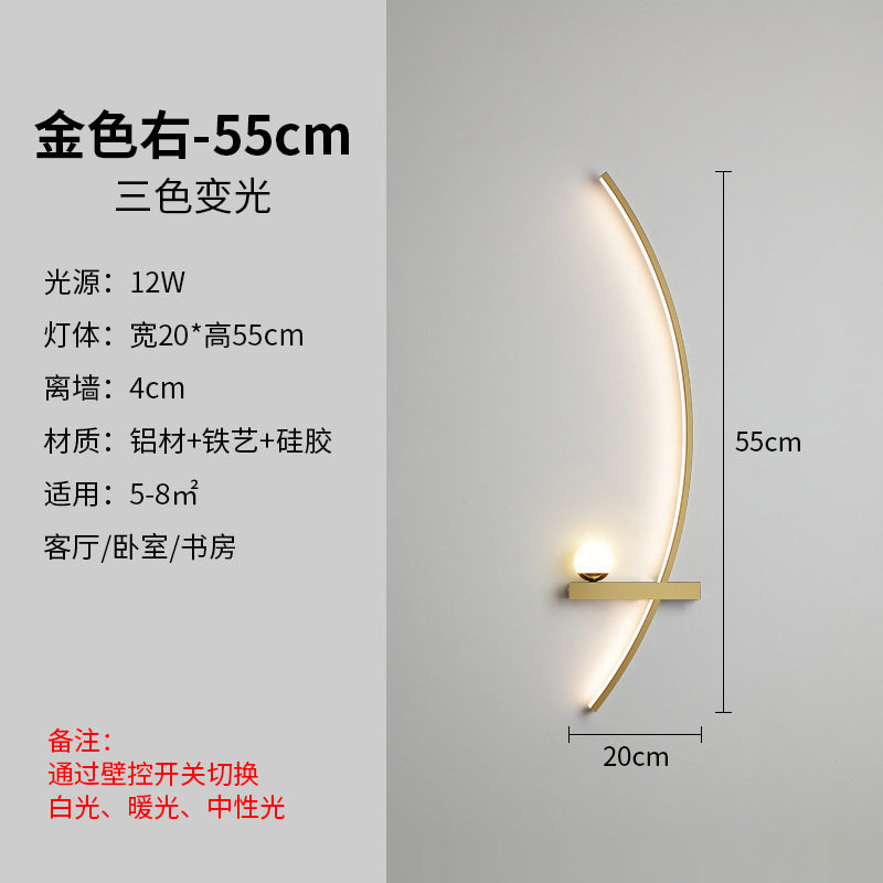 • 골드 - 왼쪽 스타일 - 55cm - 무단계 디밍