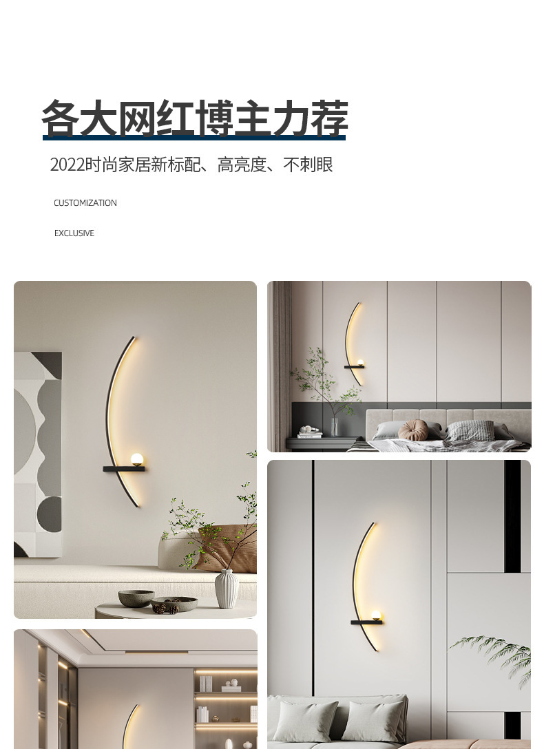 새로운 현대 거실 그릴 램프 미니멀리스트 거실 TV 배경 벽 램프 스트립 아트 침실 침대 옆 램프스토어 가기