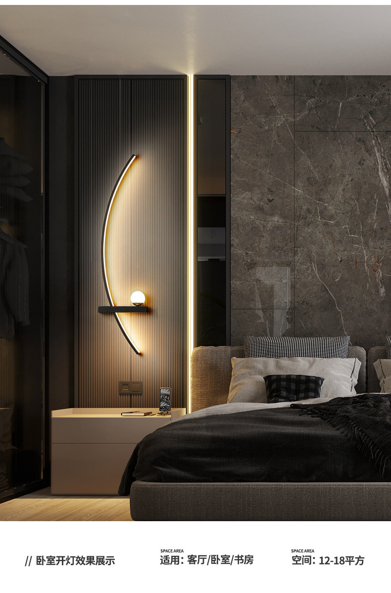 새로운 현대 거실 그릴 램프 미니멀리스트 거실 TV 배경 벽 램프 스트립 아트 침실 침대 옆 램프