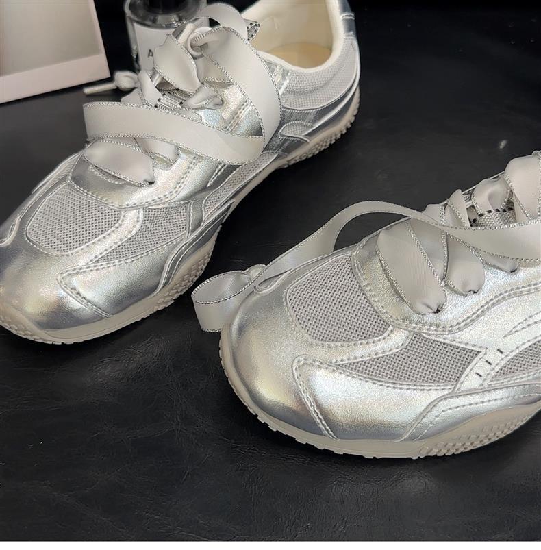 2024 새로운 부드러운 가죽 부드러운 바닥 여름 실버 훈련 신발 여성의 통기성 평면 미끄럼 방지 소 가죽 메쉬 캐주얼 신발