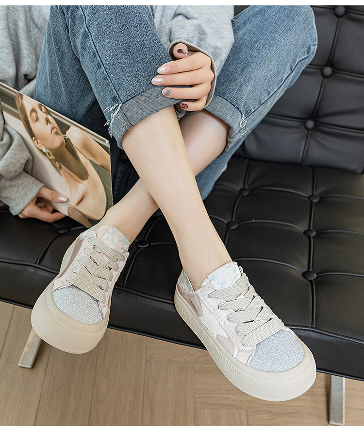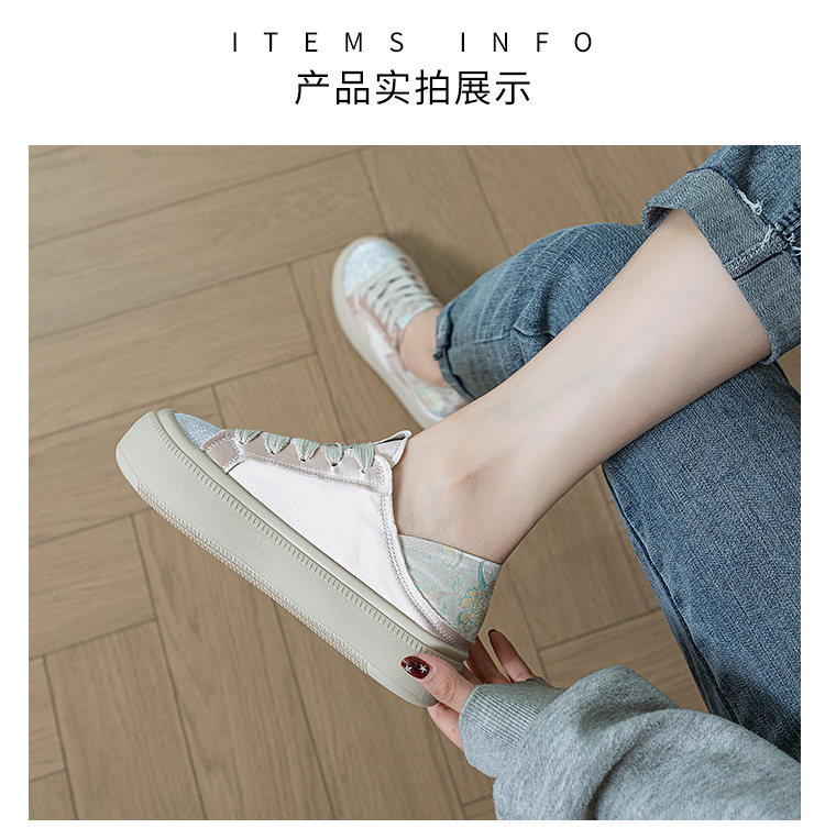 플랫폼 덩어리 캐주얼 신발 여성의 봄과 여름 2024 새로운 복고풍 발 신발 높이 증가 올 매치 화이트 신발스토어 가기