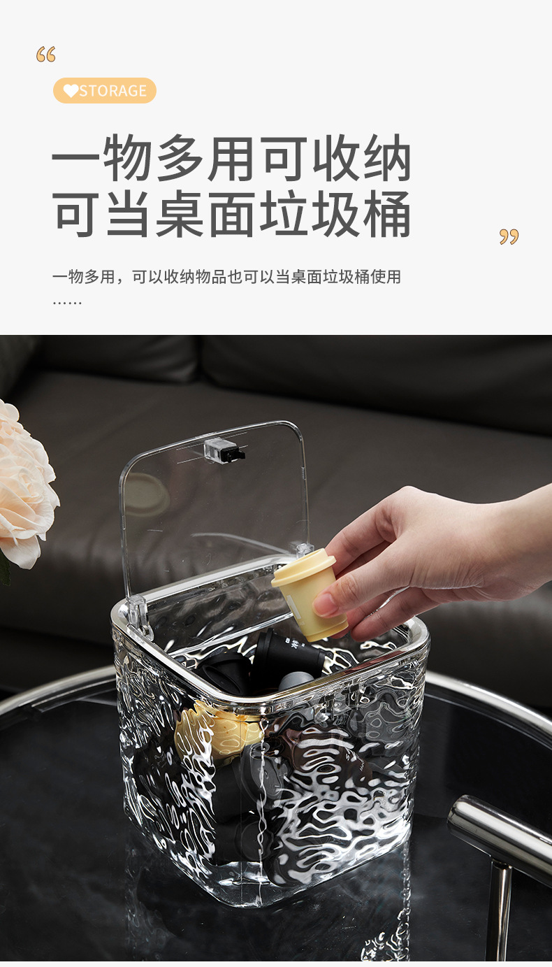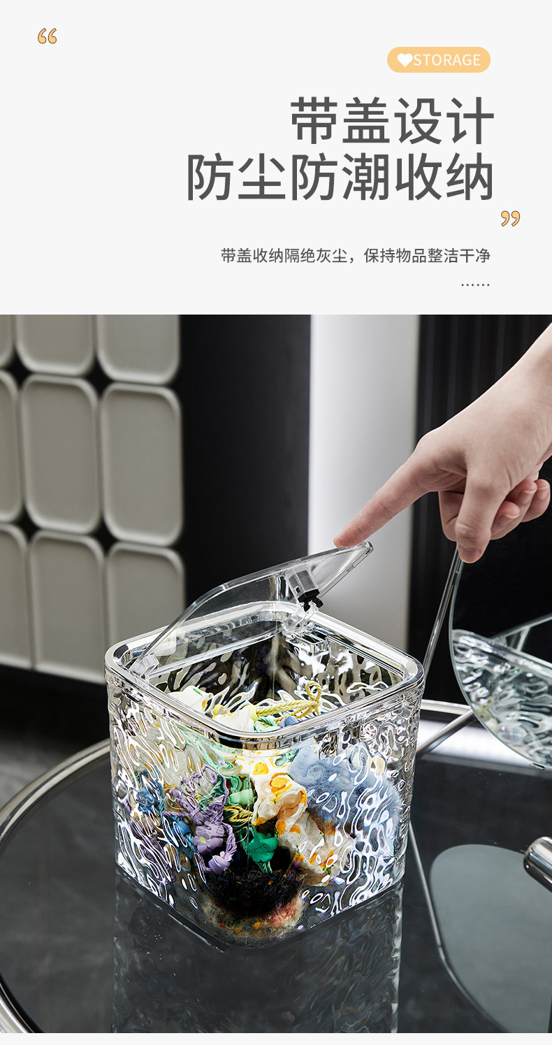 빙하 패턴 데스크탑 휴지통 홈 고 가치 거실 커피 테이블 라이트 럭셔리 투명 미니 크리에이티브 스토리지 박스 뚜껑