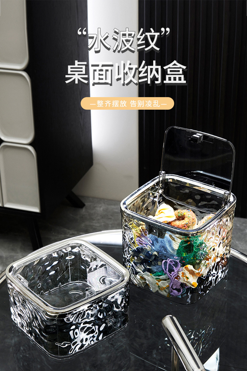 빙하 패턴 데스크탑 휴지통 홈 고 가치 거실 커피 테이블 라이트 럭셔리 투명 미니 크리에이티브 스토리지 박스 뚜껑스토어 가기