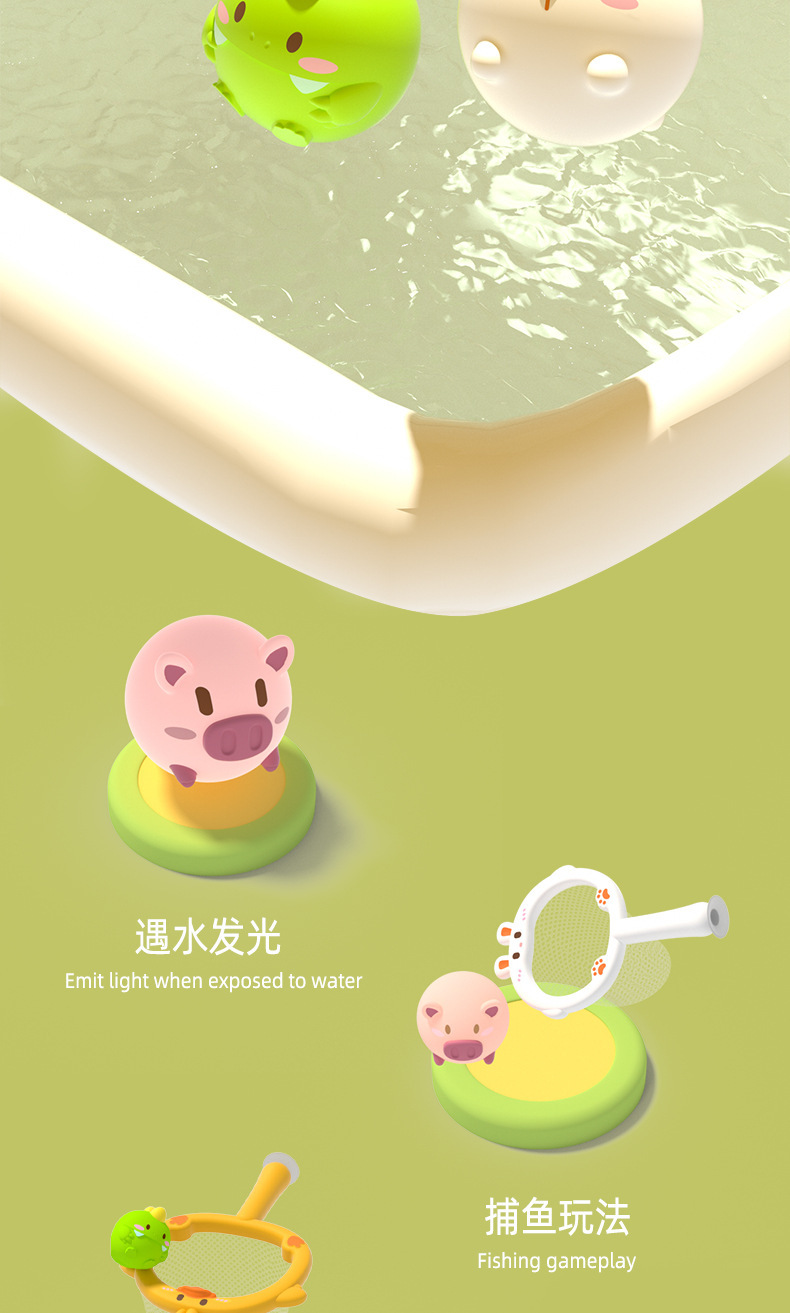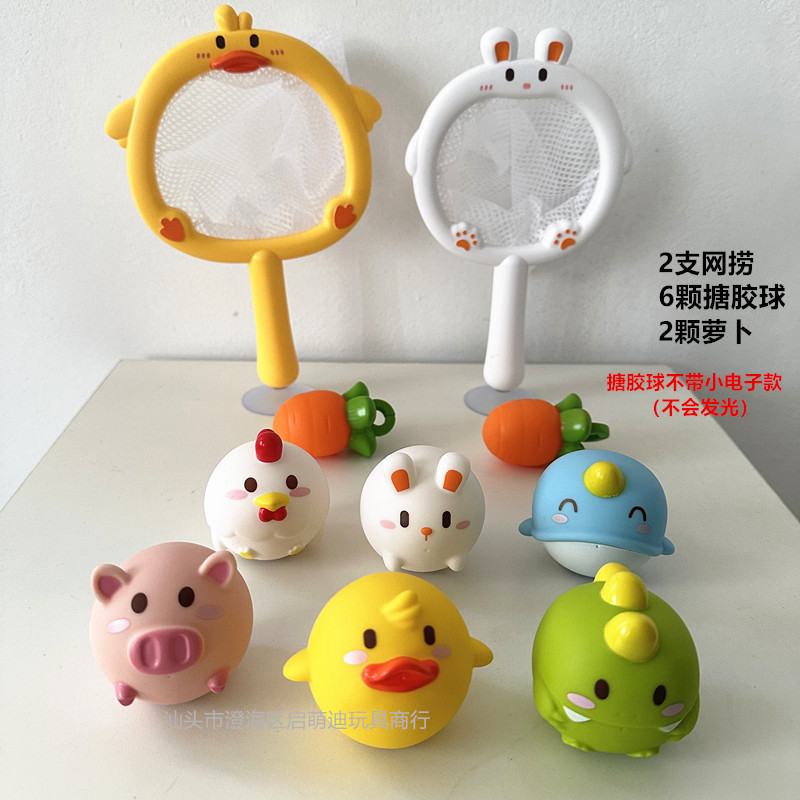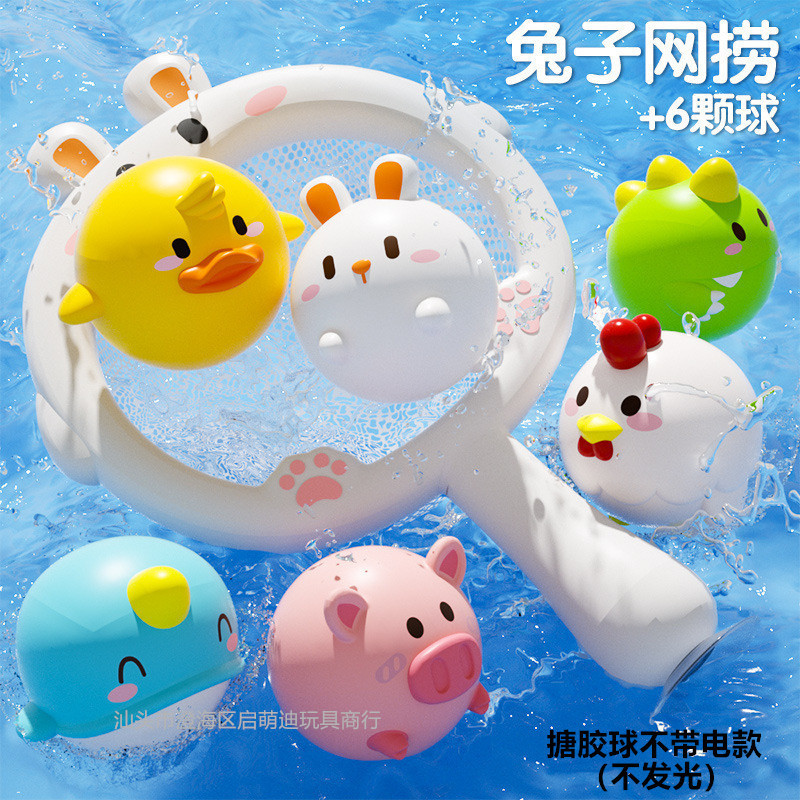[물 없는 비닐볼] 연약한 비닐 장난감 아기 그물 낚시 물고기 입욕 물 작은 황오리 국경 간 신제품