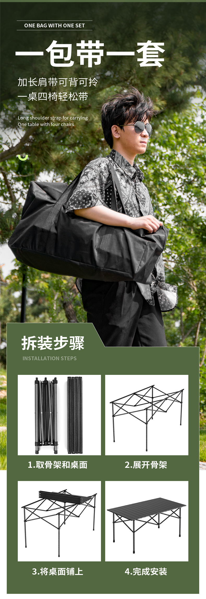 야외 테이블과 의자 접이식 휴대용 피크닉 테이블 알루미늄 합금 계란 롤 테이블 캠핑 테이블 세트 피크닉 용품 Shen Heng