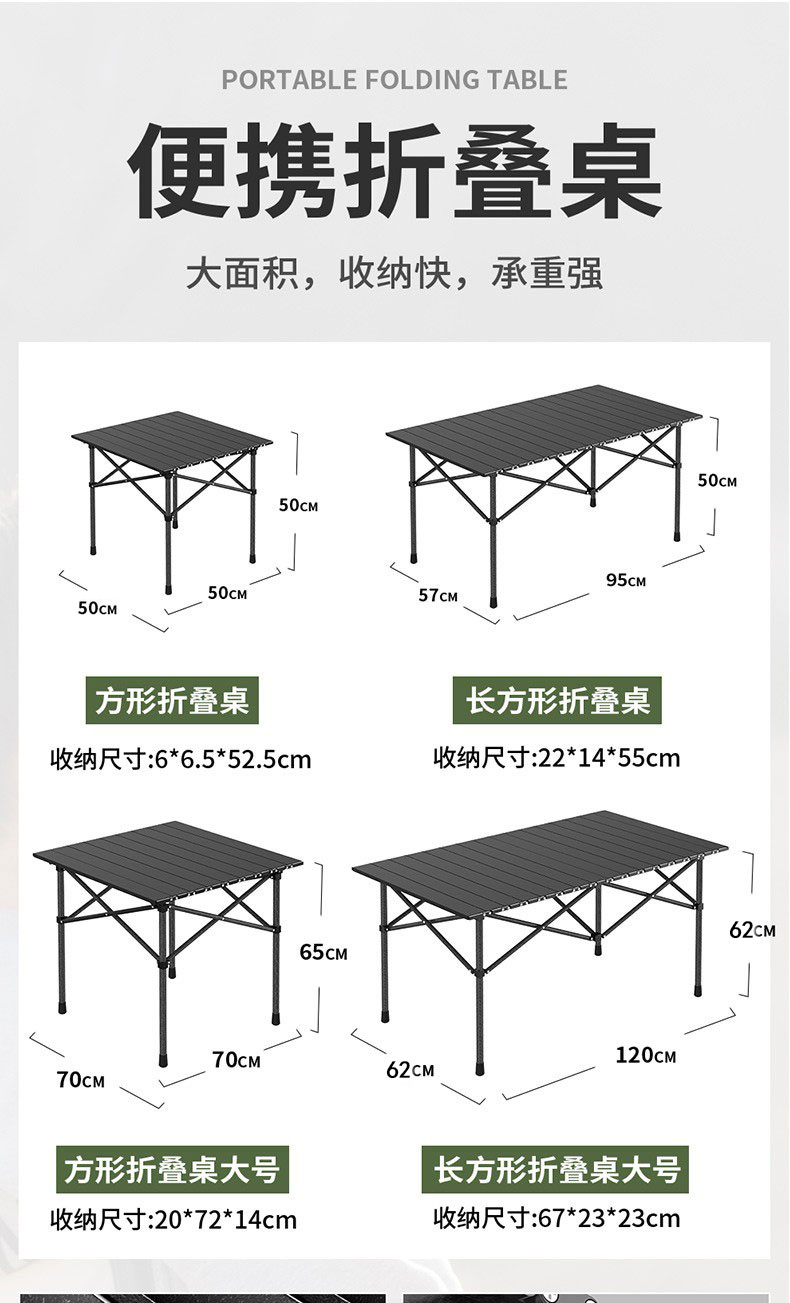야외 테이블과 의자 접이식 휴대용 피크닉 테이블 알루미늄 합금 계란 롤 테이블 캠핑 테이블 세트 피크닉 용품 Shen Heng스토어 가기