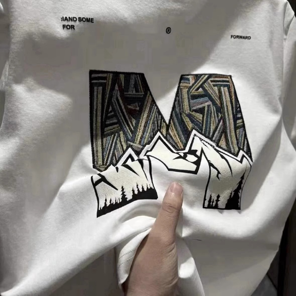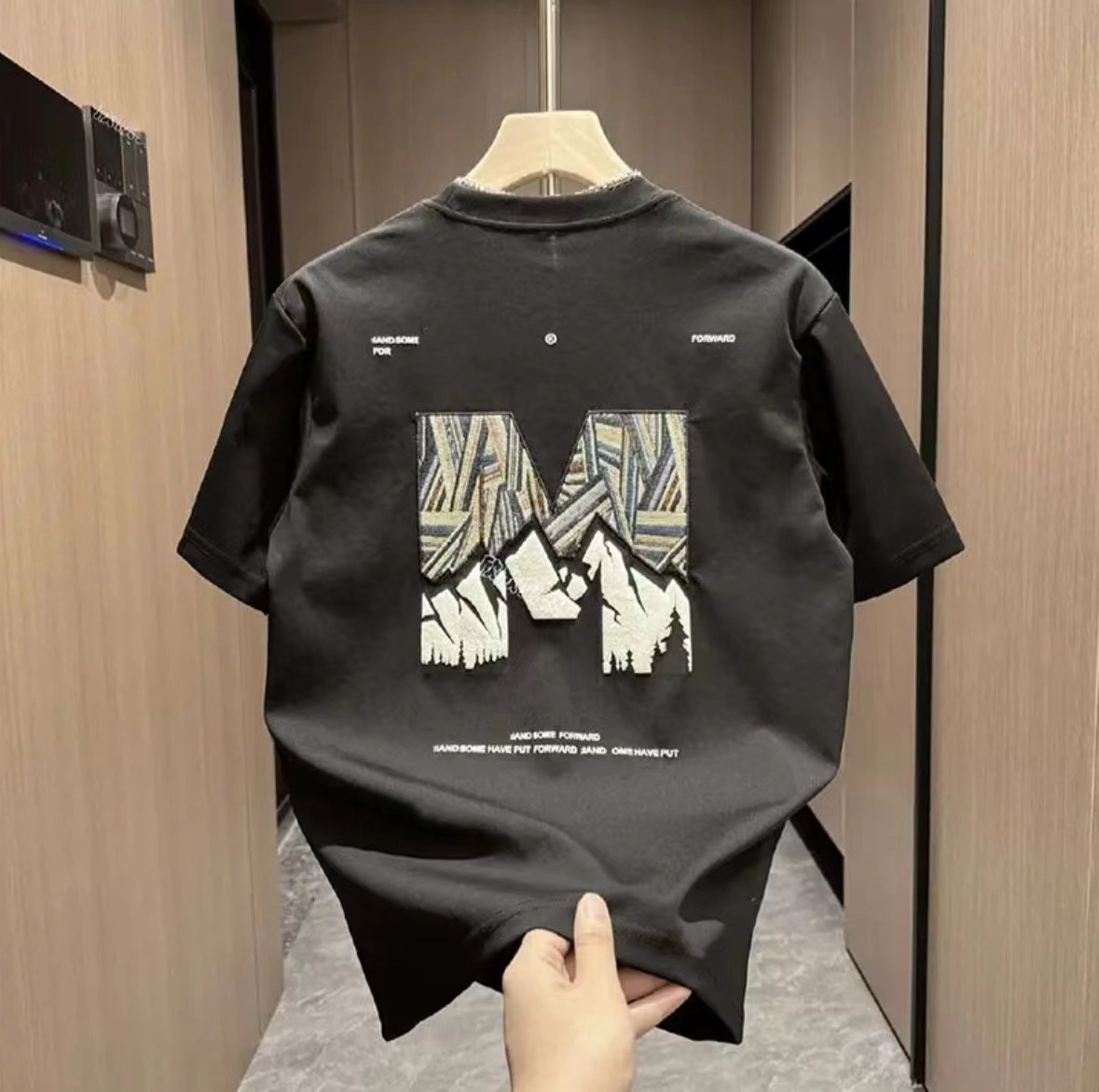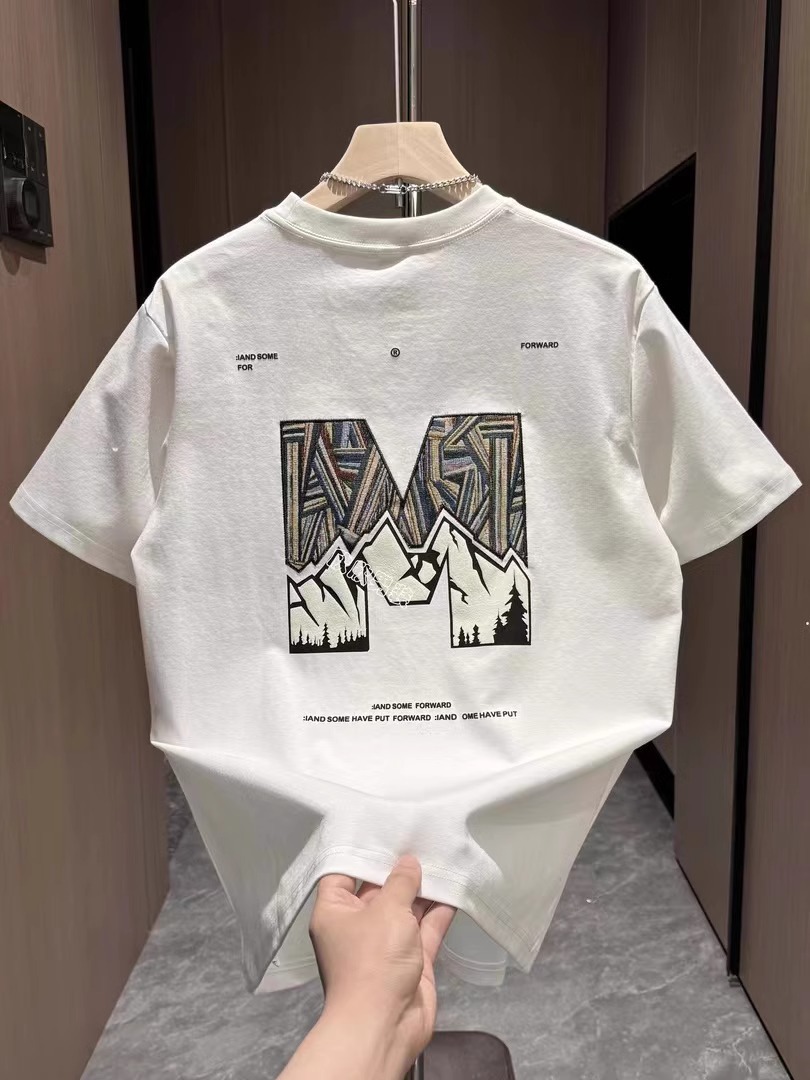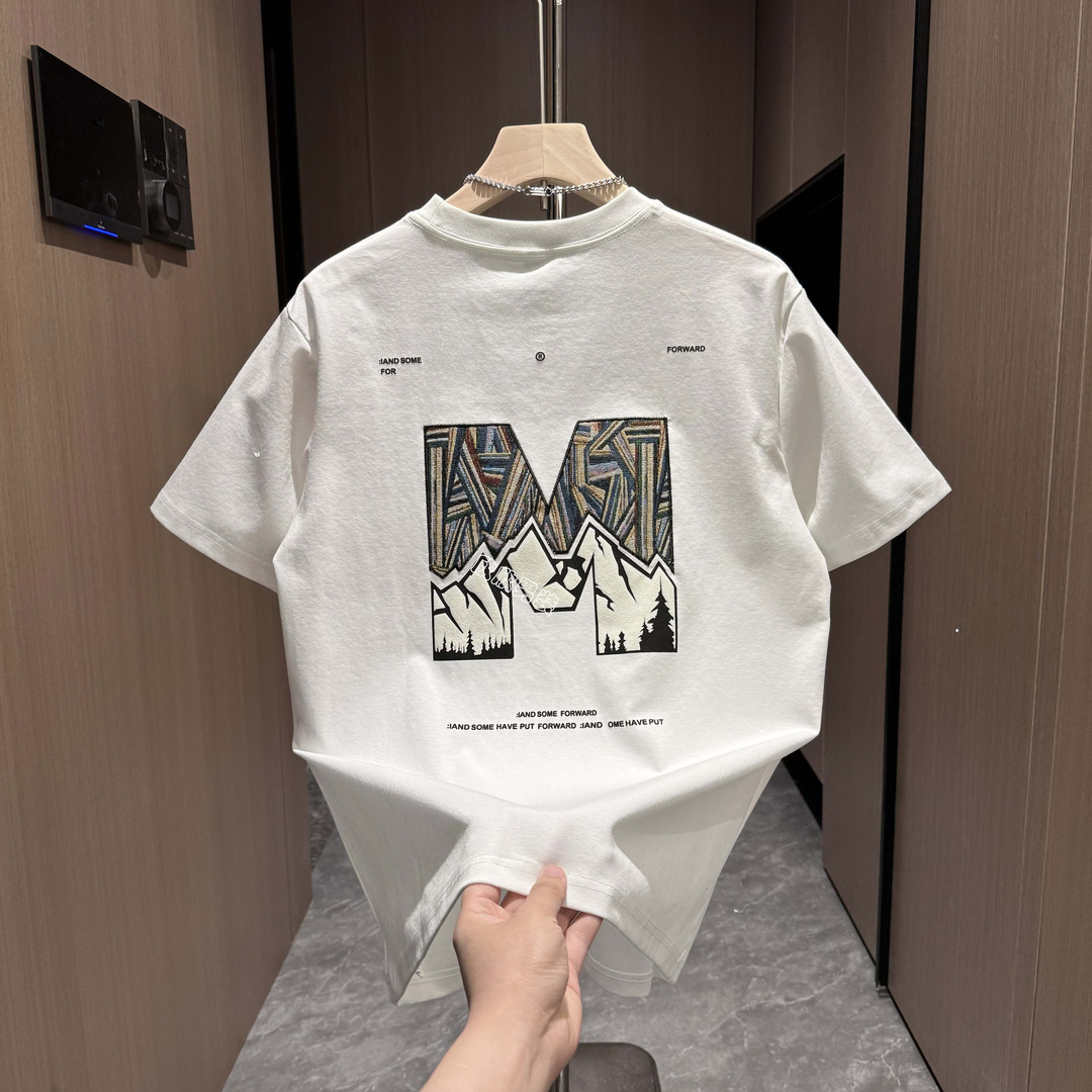 반팔 티셔츠 남성 패션 브랜드 여름 느슨한 5 점 소매 2024 새로운 인터넷 유행 간단한 인쇄 M 탑스토어 가기