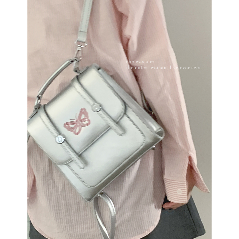 틈새 실버 나비 배낭 여성의 2024 새로운 유행 패션 학생 배낭 모든 경기 휴대용 여행 정스토어 가기