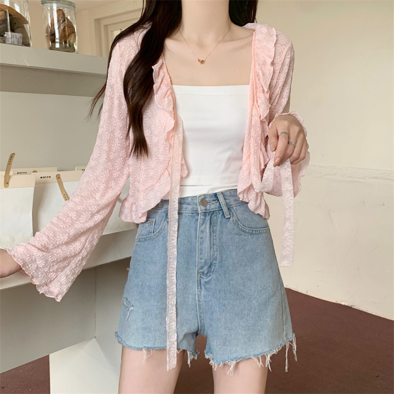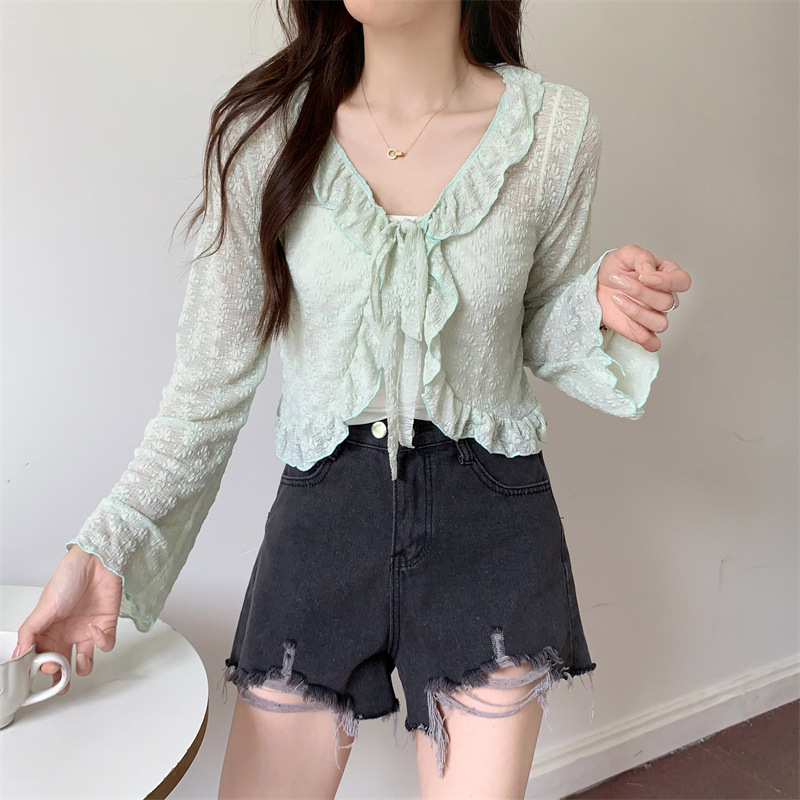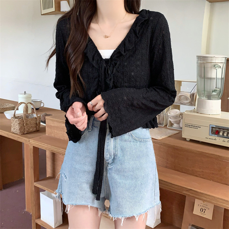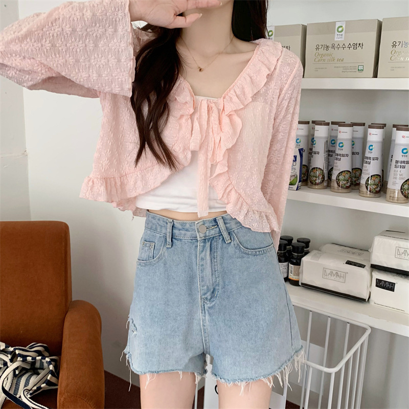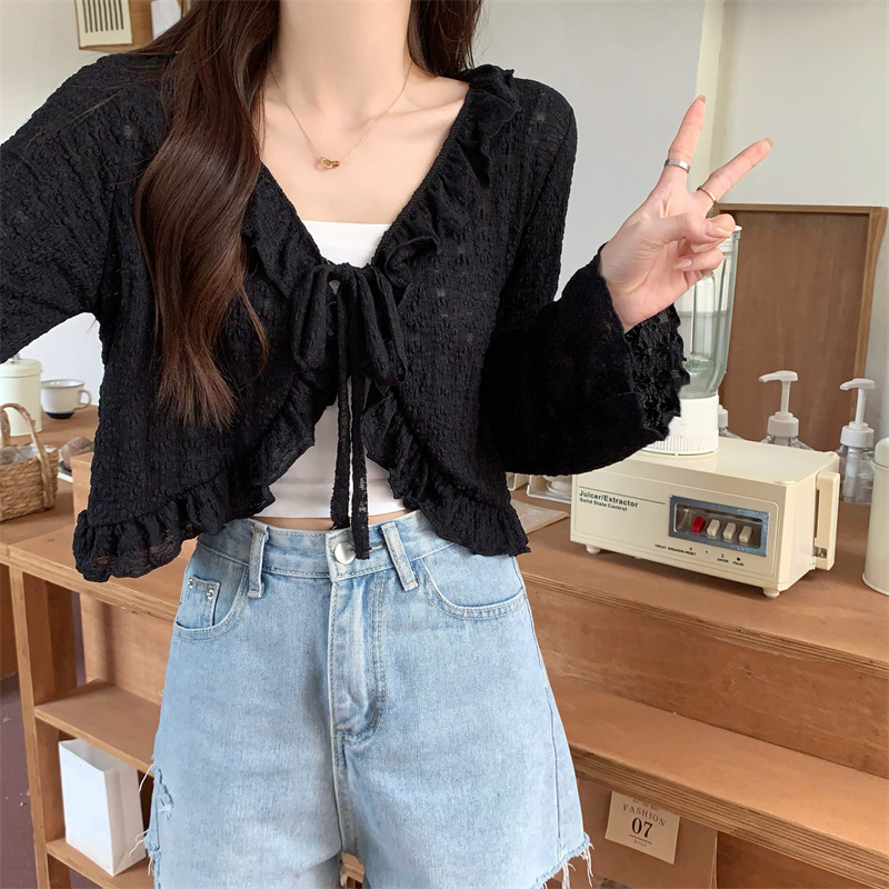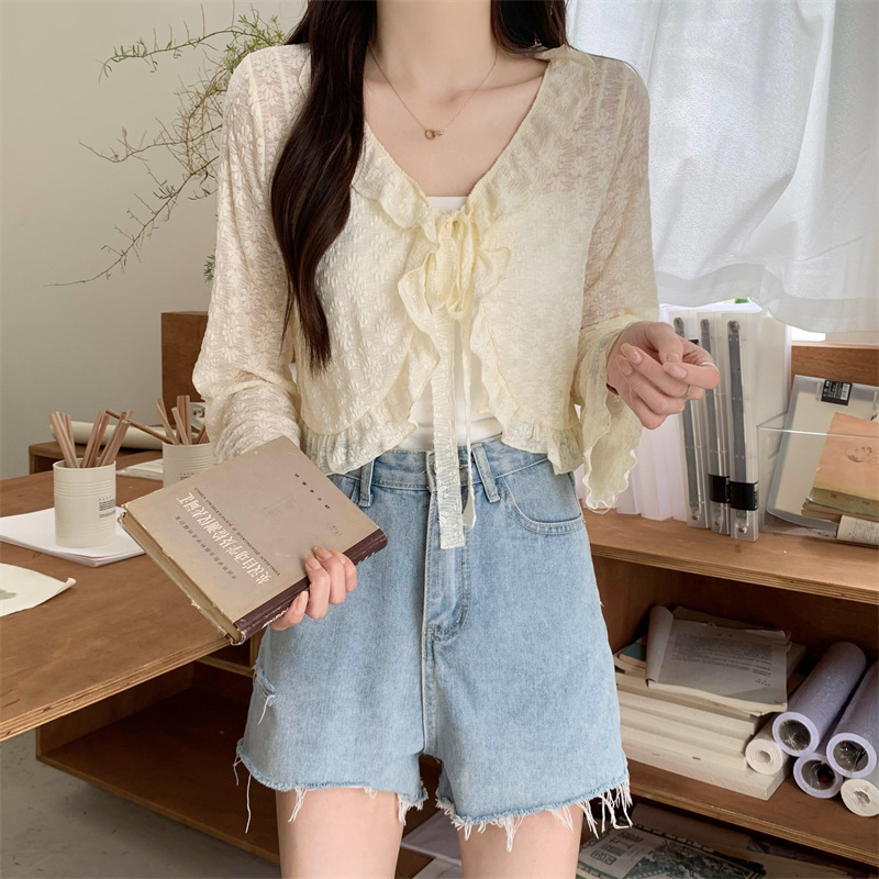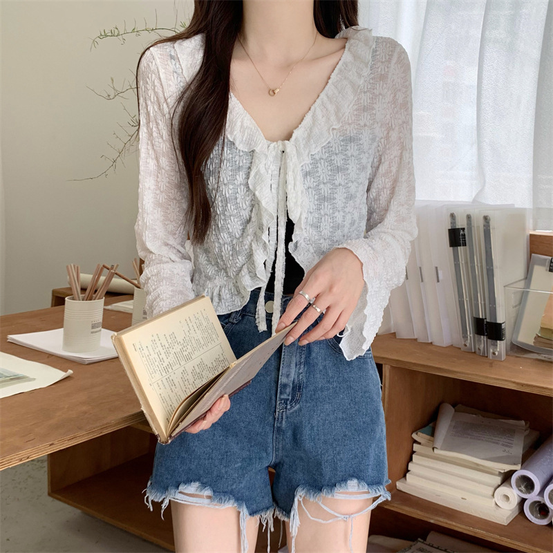 카디건 긴팔 쉬폰 셔츠 재킷 아름다운 세련된 탑 디자인 센스 얇은 레이스 업 선스크린 레이스 여성용 여름스토어 가기
