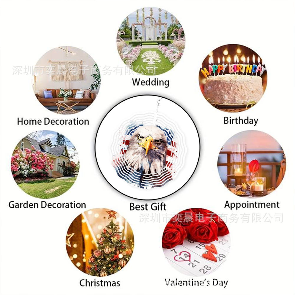 공장 스트레이트 헤어 새로운 독립 기념일 미국 로고 바람 회전 다채로운 공예 마당 장식 접이식 바람 차임스토어 가기