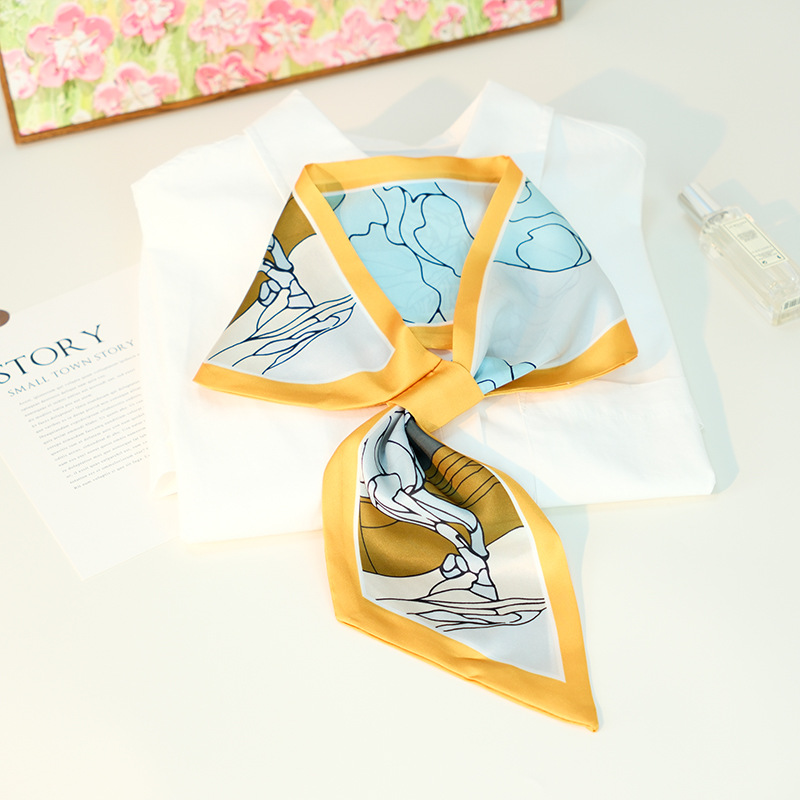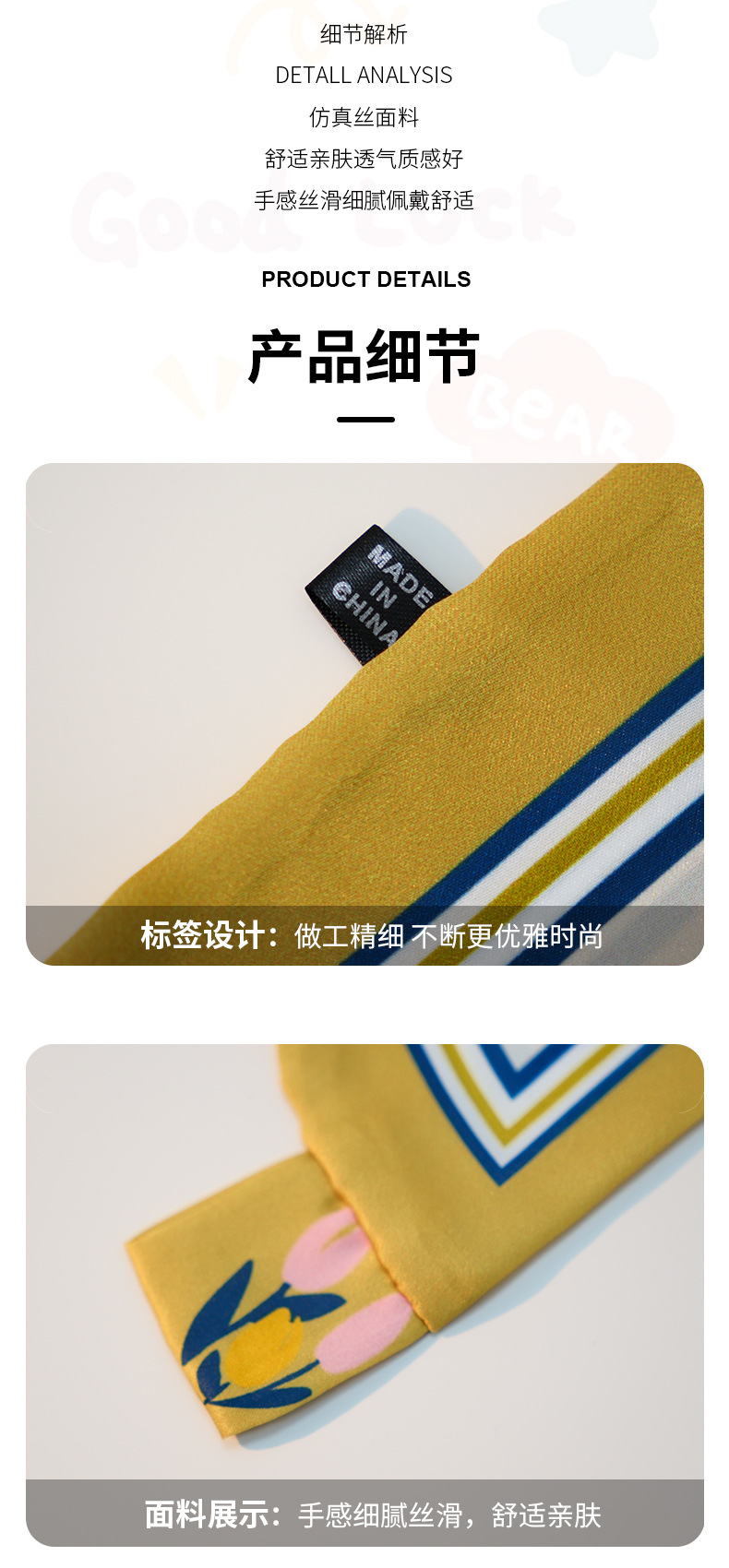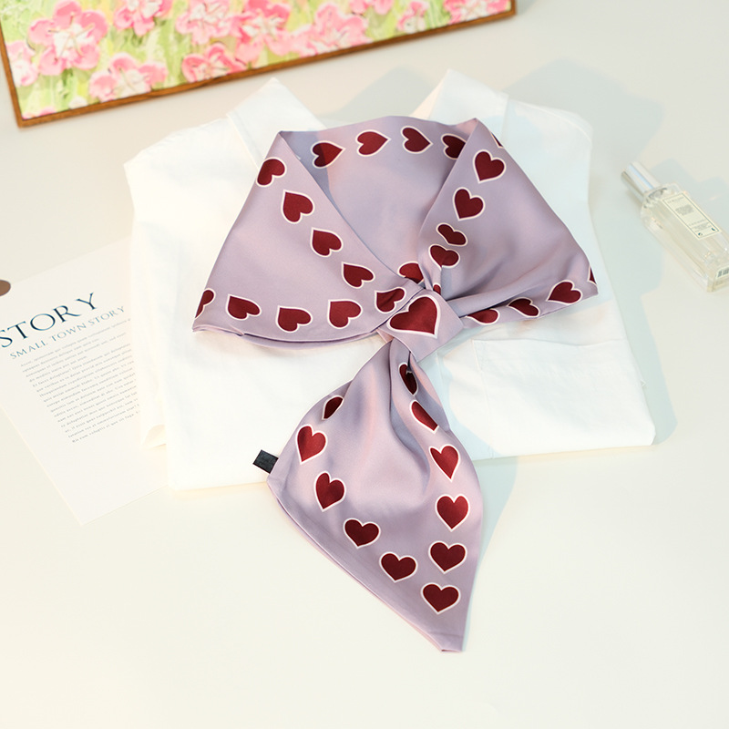 게으른 작은 귀 크로스 긴 실크 스카프 여성 한국 스타일 헤어 벨트 작은 스카프 스카프 리본 사랑 인쇄