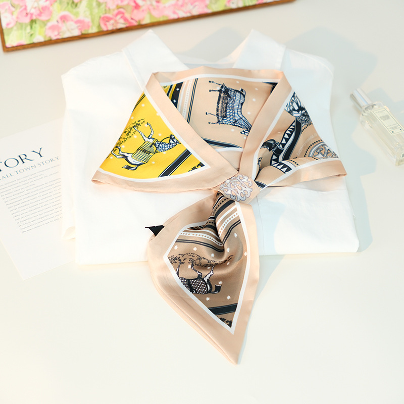 게으른 작은 귀 크로스 긴 실크 스카프 여성 한국 스타일 헤어 벨트 작은 스카프 스카프 리본 사랑 인쇄스토어 가기