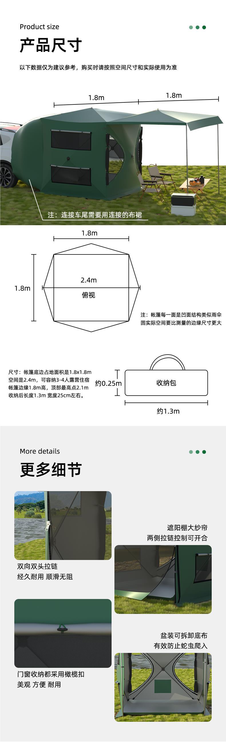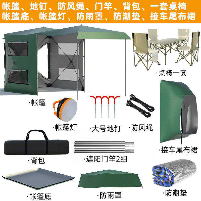 • [두꺼운 실버 코팅 420D] 녹색 텐트 리어 확장 천