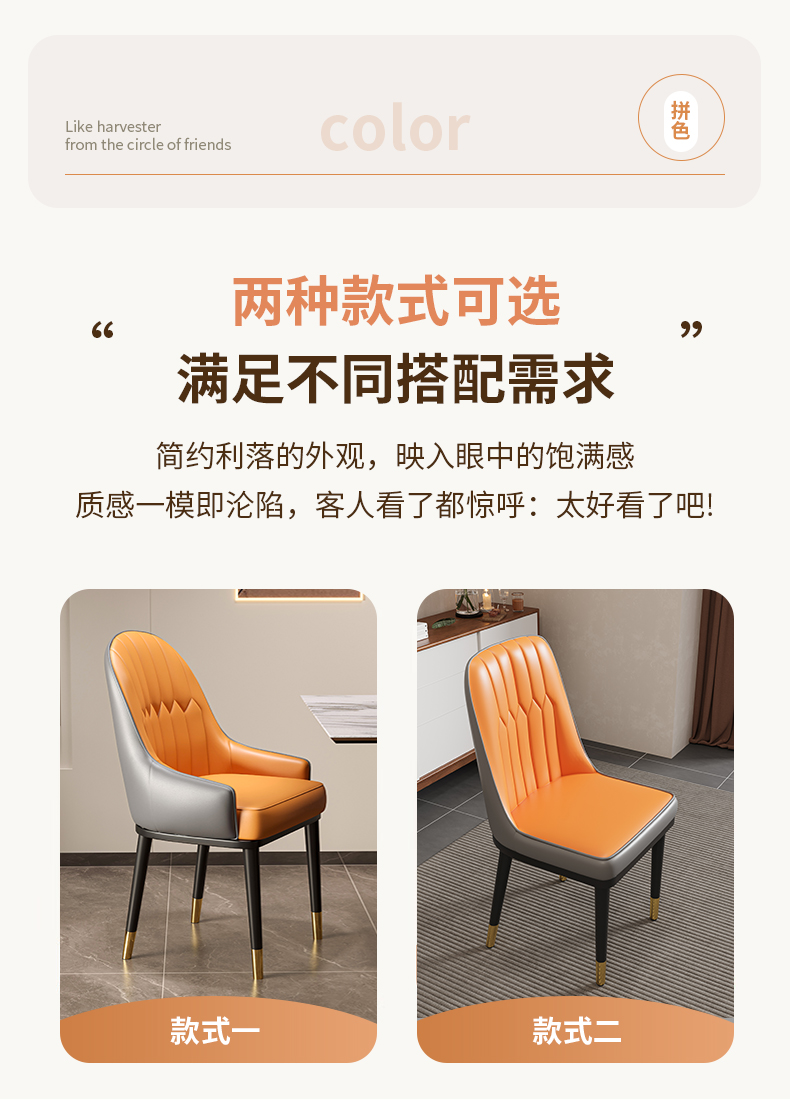 • 오렌지색 표면, 커피색 뒷면 [대외 무역 가죽 강화 강철 프레임] 블랙 골드 다리⚑