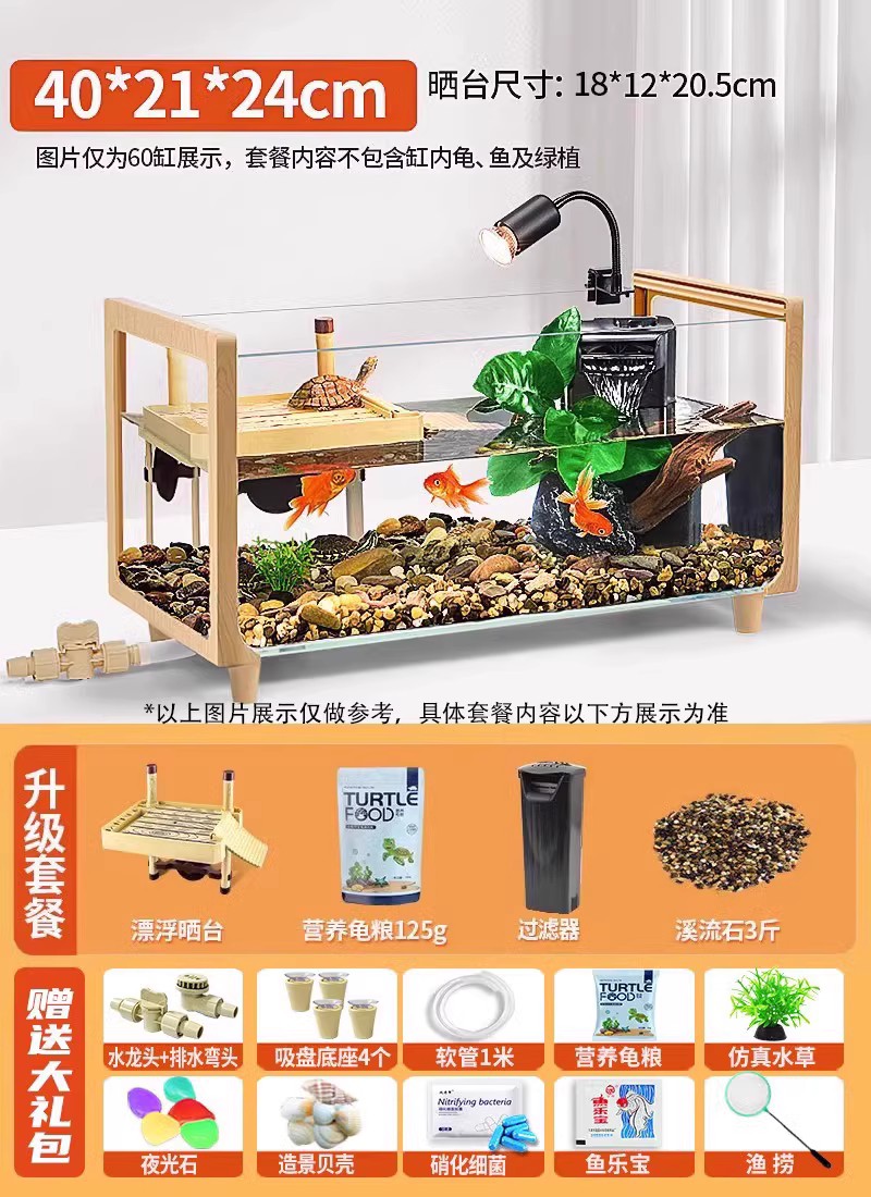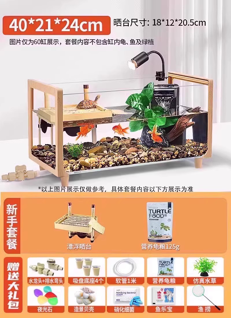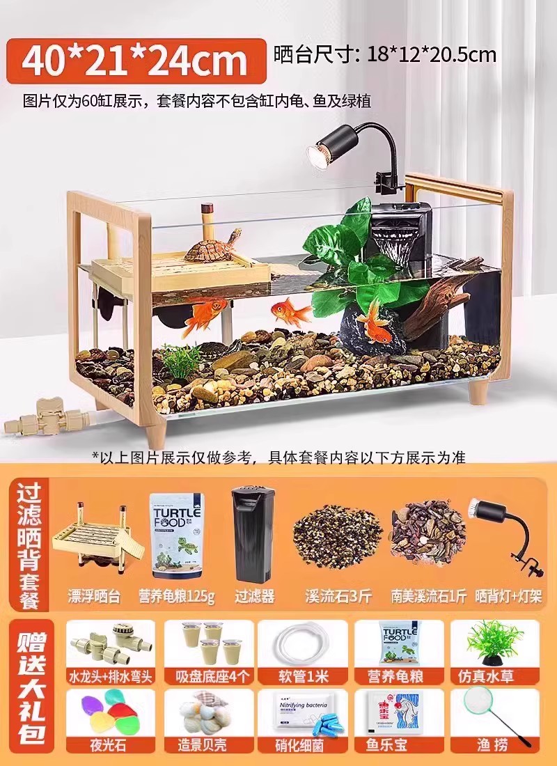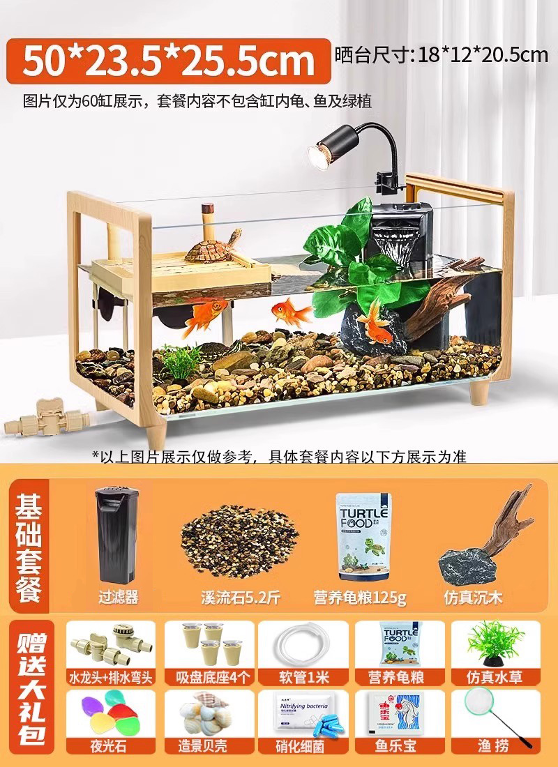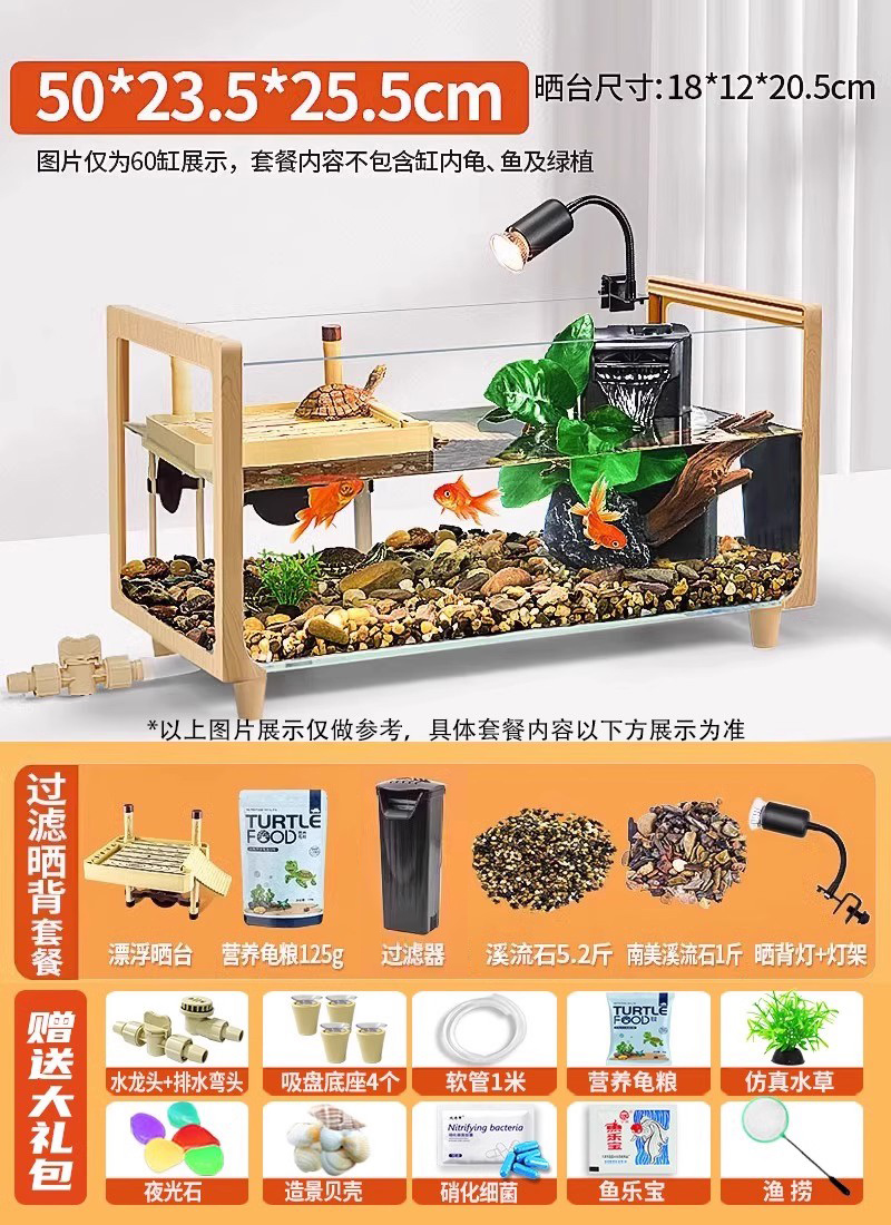 우드 그레인 거북 탱크 초백색 유리 선스탠드 조경 홈 사육 탱크 생태 어항 크기 어거북 Zheng과 혼합스토어 가기