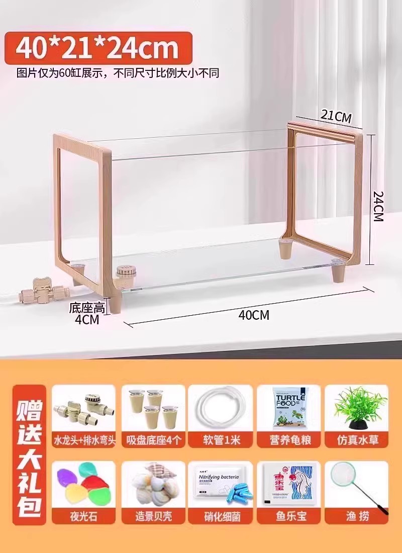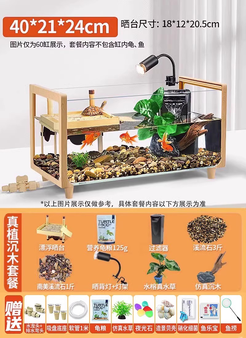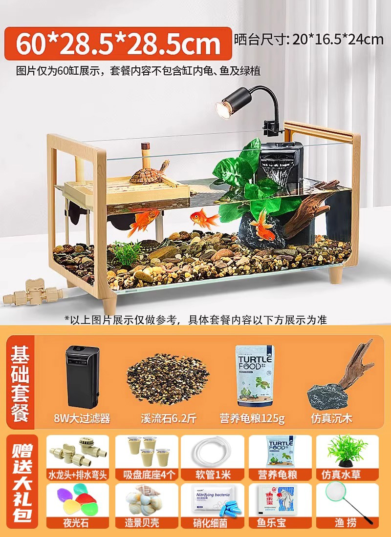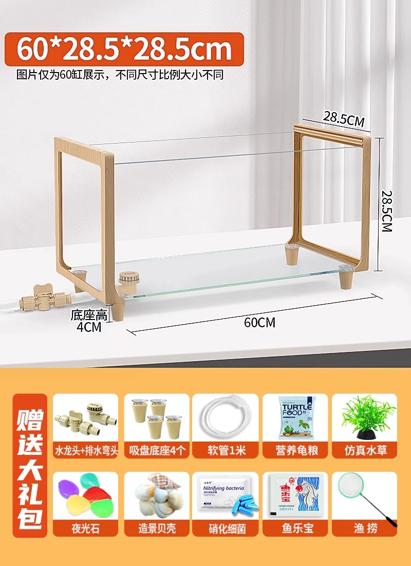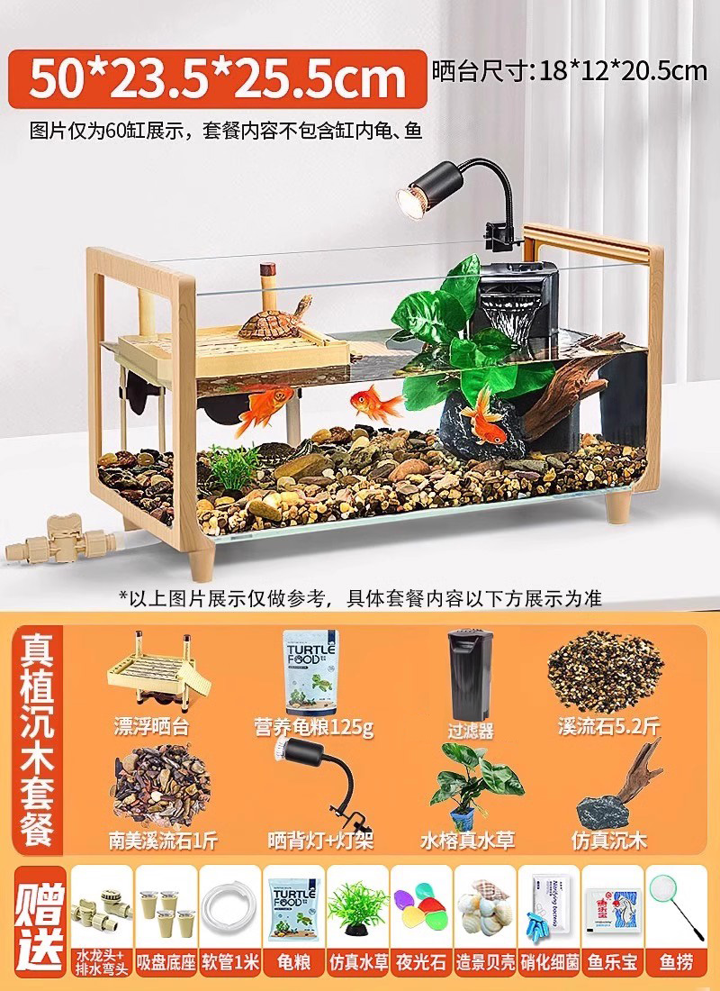 우드 그레인 거북 탱크 초백색 유리 선스탠드 조경 홈 사육 탱크 생태 어항 크기 어거북 Zheng과 혼합스토어 가기
