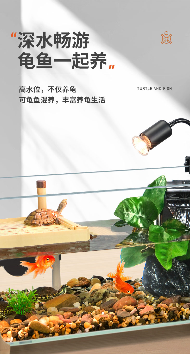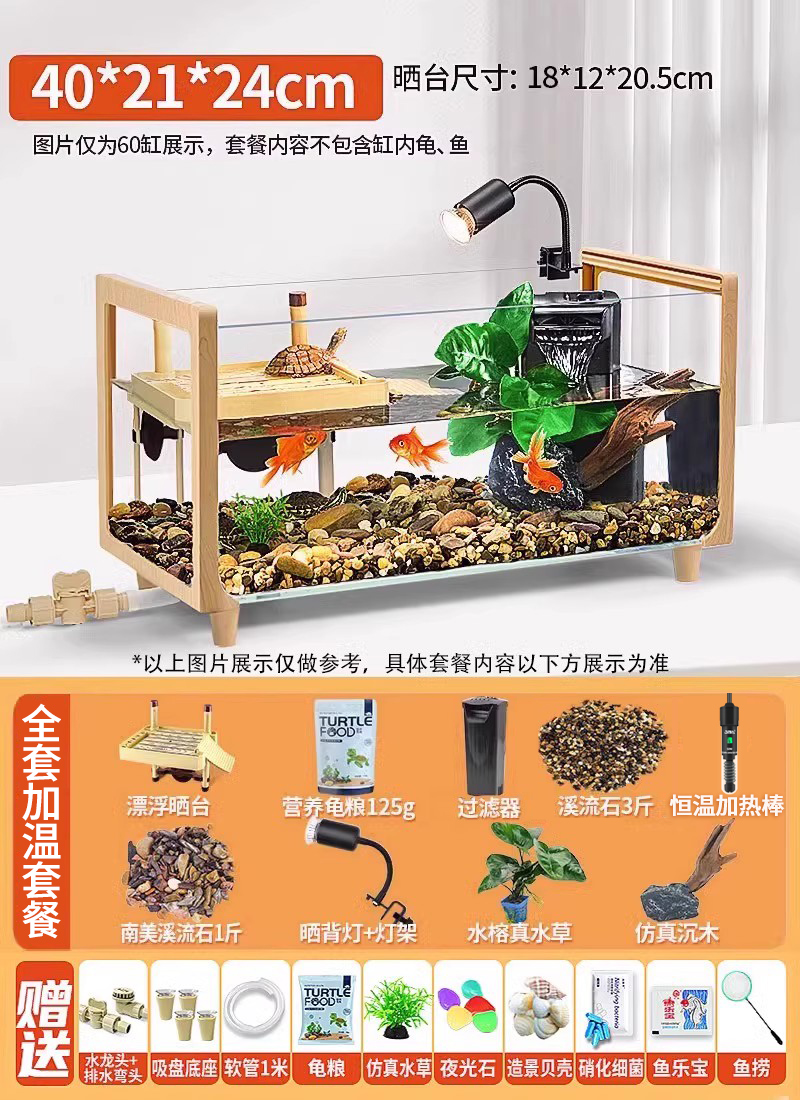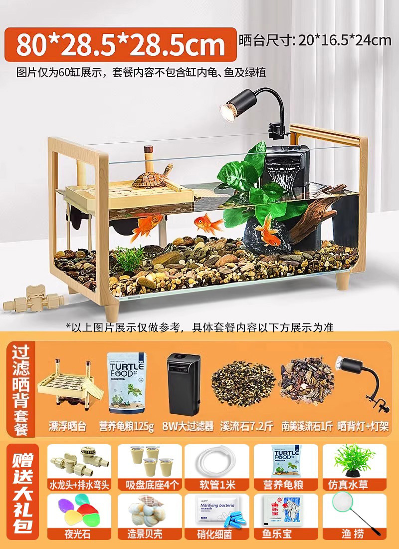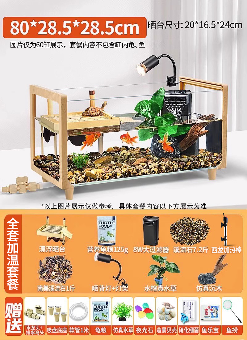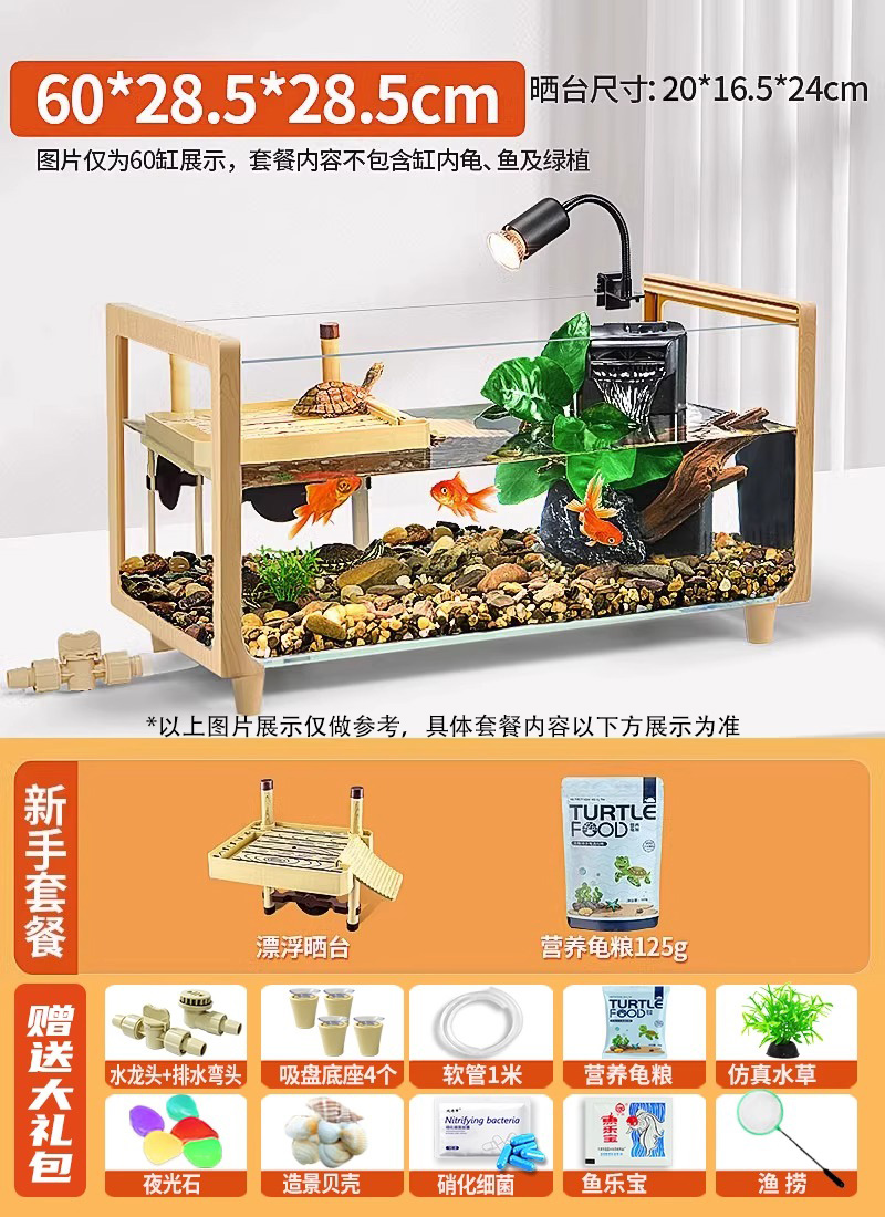 우드 그레인 거북 탱크 초백색 유리 선스탠드 조경 홈 사육 탱크 생태 어항 크기 어거북 Zheng과 혼합스토어 가기