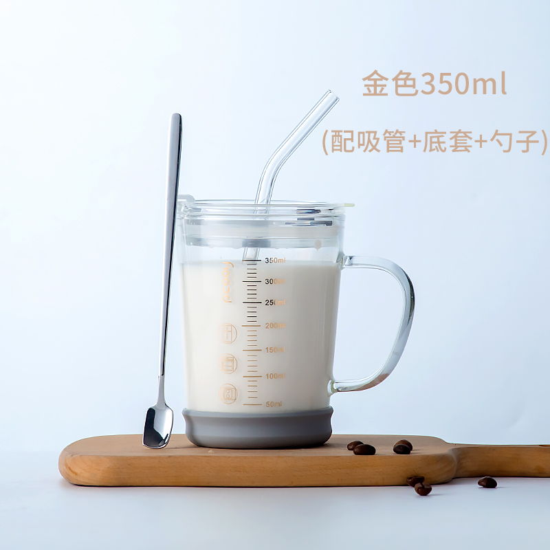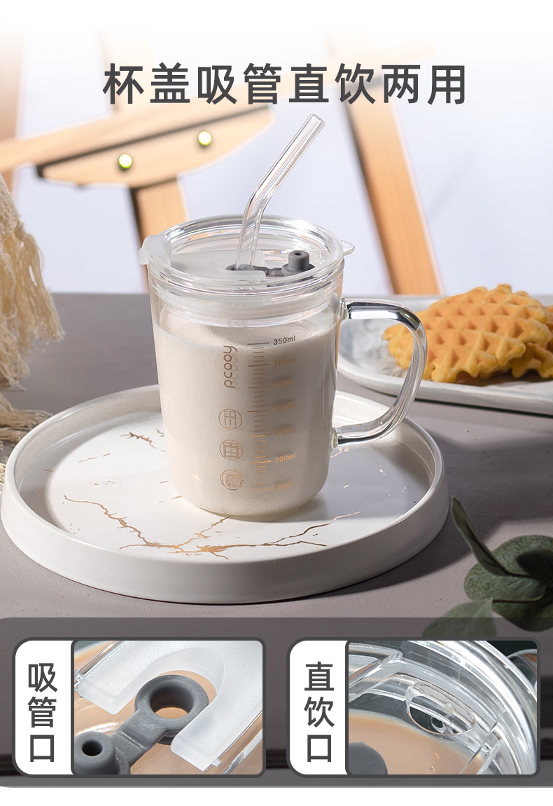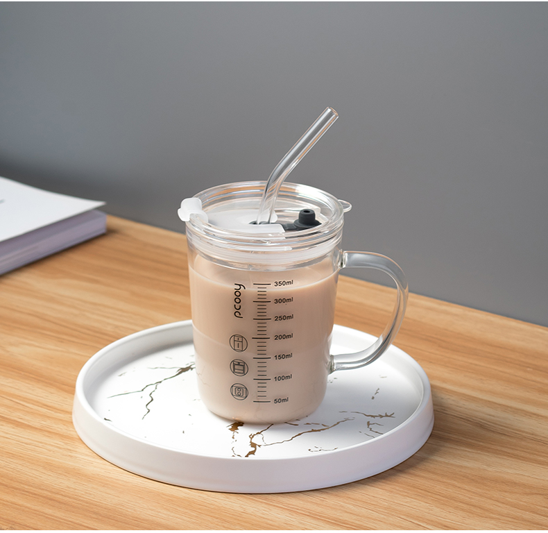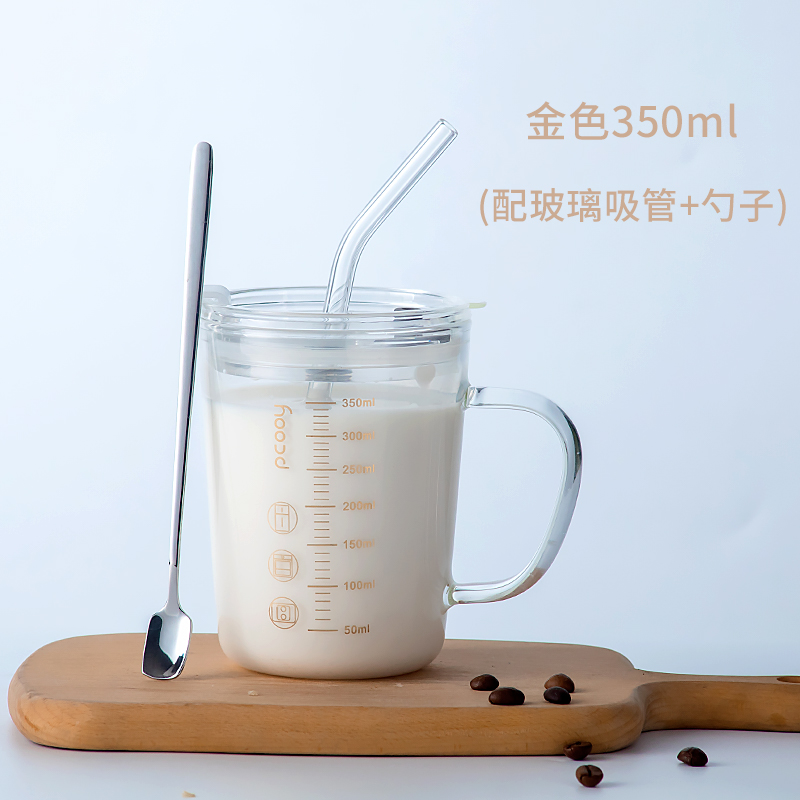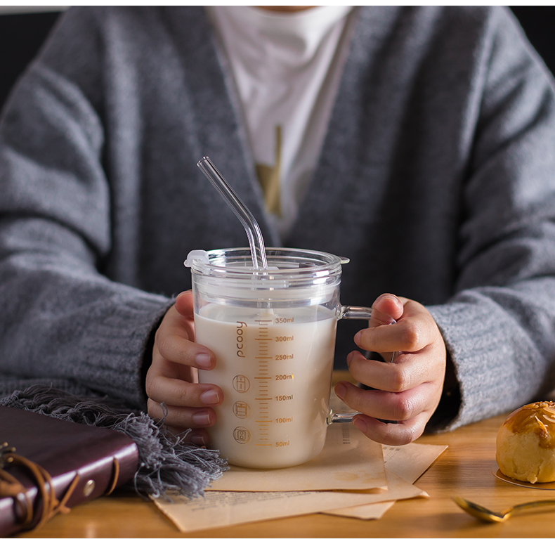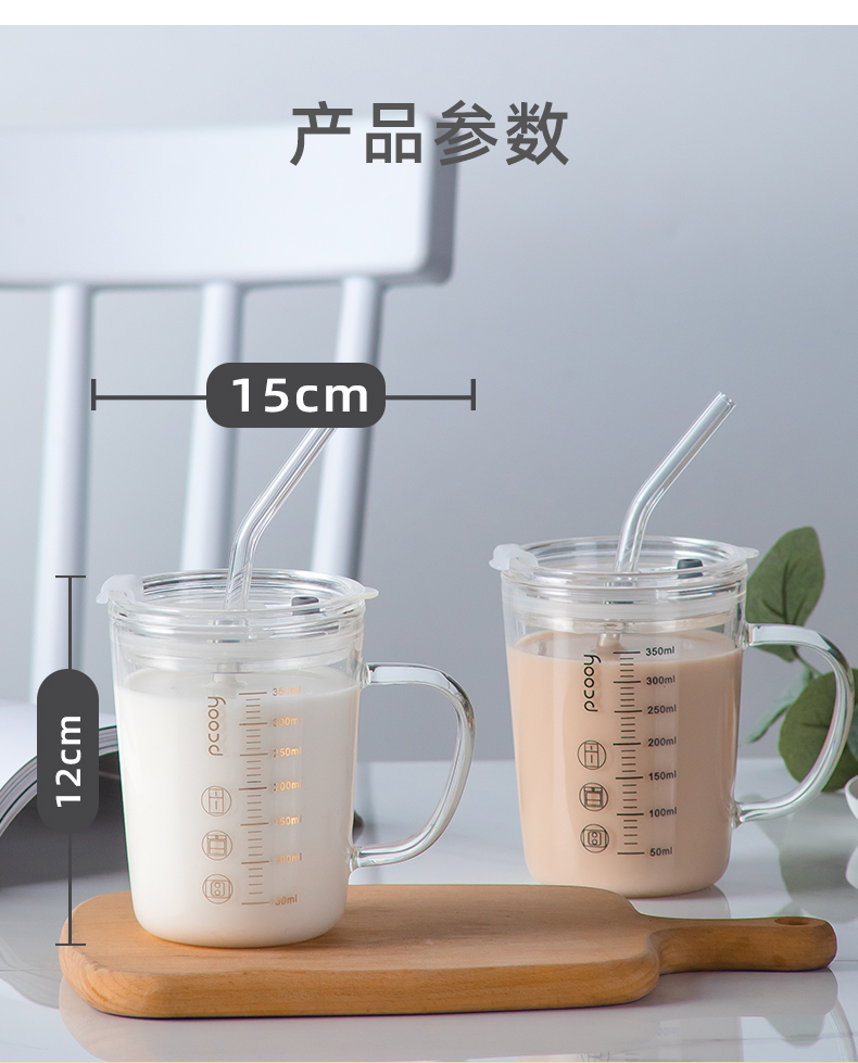 스케일 밀크 컵 높은 색상 음료 커피 컵 컵 뚜껑 가구 성인과 여성을위한 마이크로 웨이브 밀짚 유리
