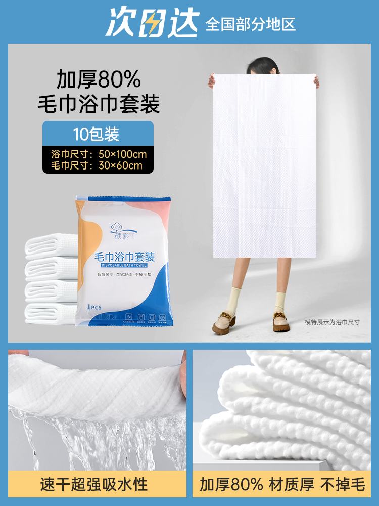 일회용 수건 및 목욕타월 세트 개별 포장 여행용 순면 압축 흡수성 두꺼운 대형 호텔용
