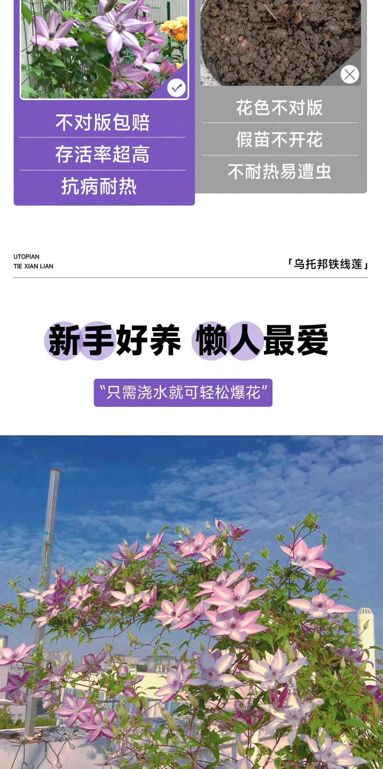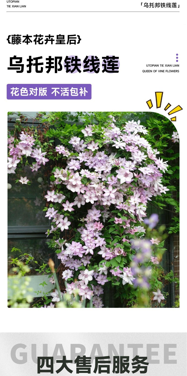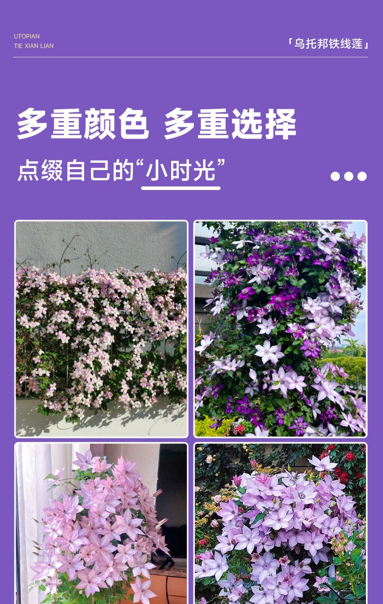 • [갈라진 큰 모종] (인어공주) 클레마티스 [검은색 사각형 화분 또는 1.5갤런]