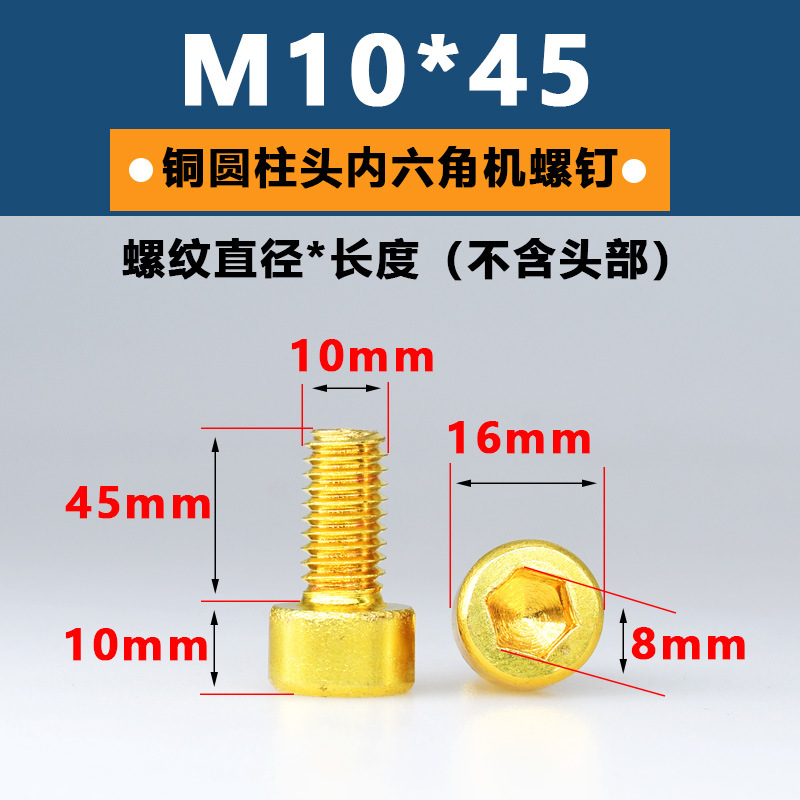 공장 구리 육각형 소켓 스크류 헤드 육각형 소켓 볼트 황동 컵 헤드 스크류 골드 순수 황동 기계 나사