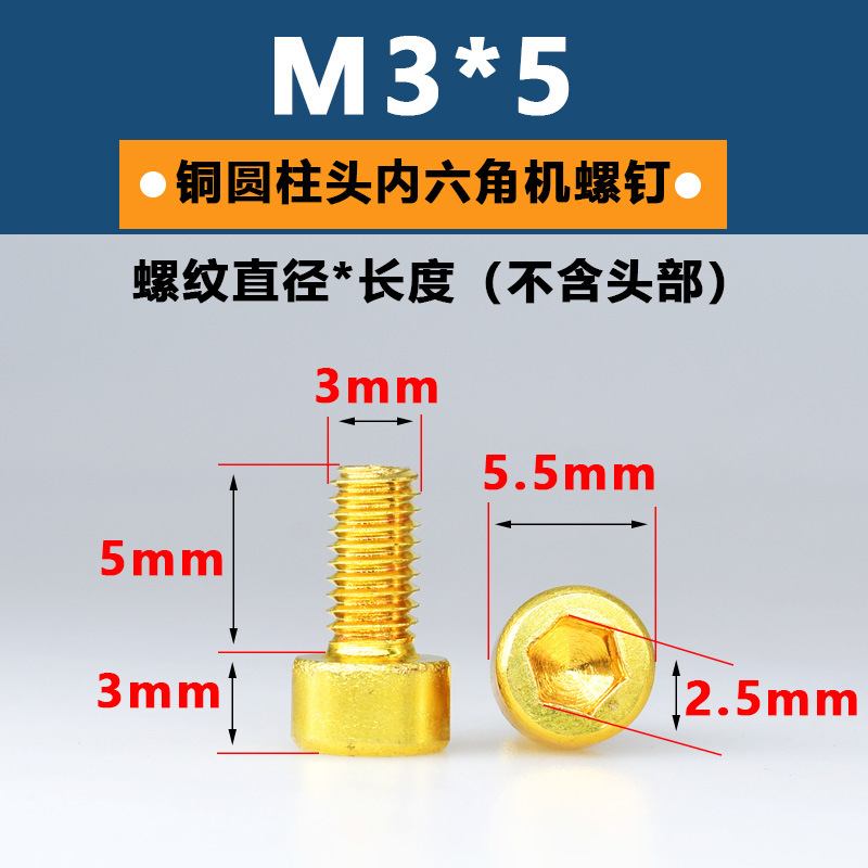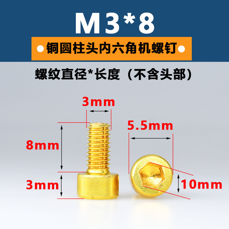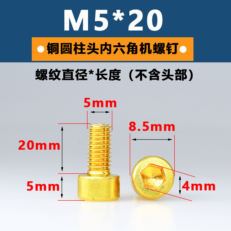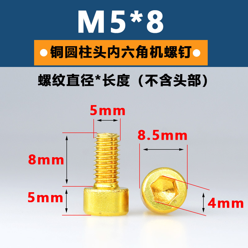 공장 구리 육각형 소켓 스크류 헤드 육각형 소켓 볼트 황동 컵 헤드 스크류 골드 순수 황동 기계 나사스토어 가기
