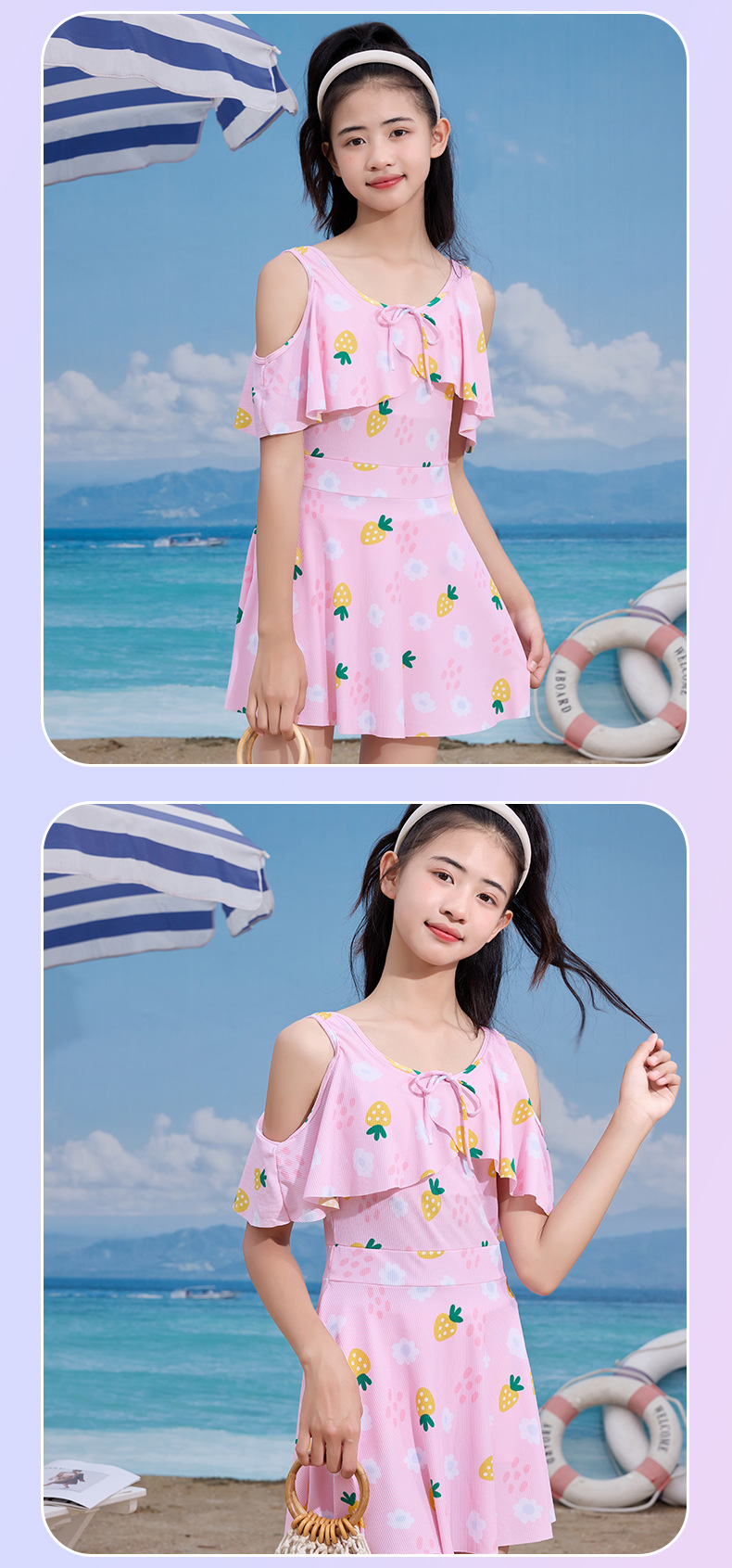 새로운 분할 소녀 중학생 치마 귀여운 공주 치마 수영복 해변 온천 휴가 수영복 여성 도매스토어 가기