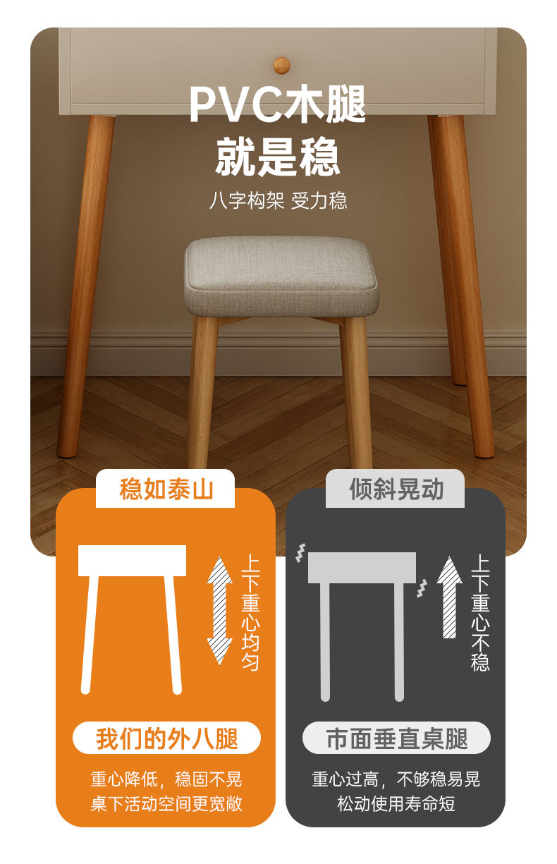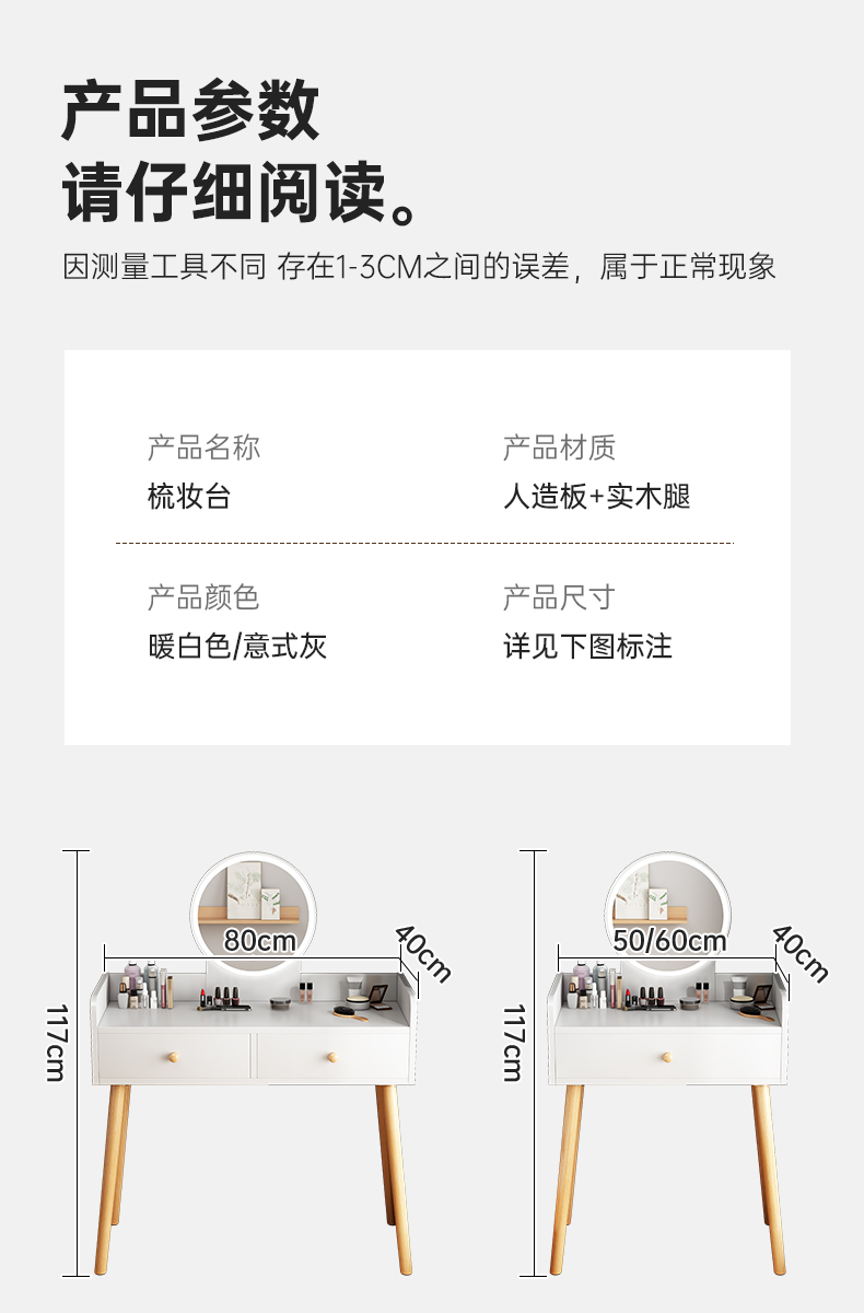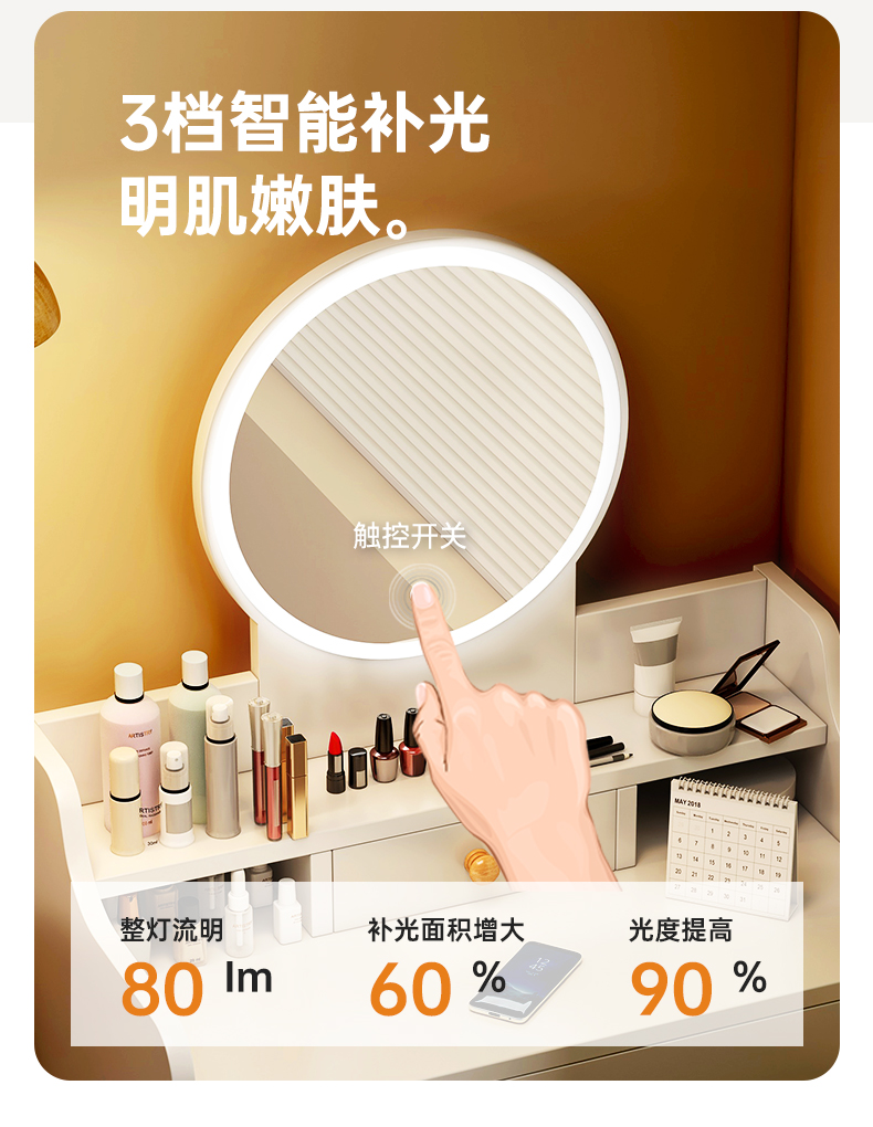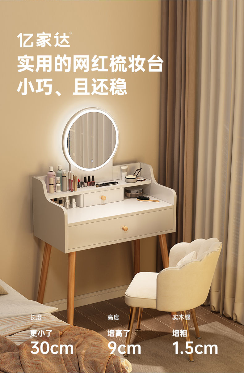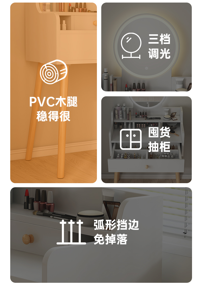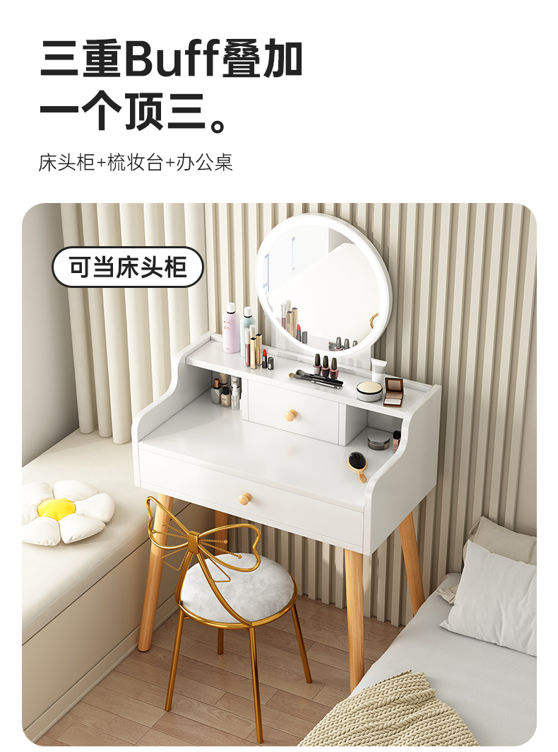 • 【더블 서랍 + LED 조명 + 꽃잎 의자】 따뜻한 흰색 80cm⚑