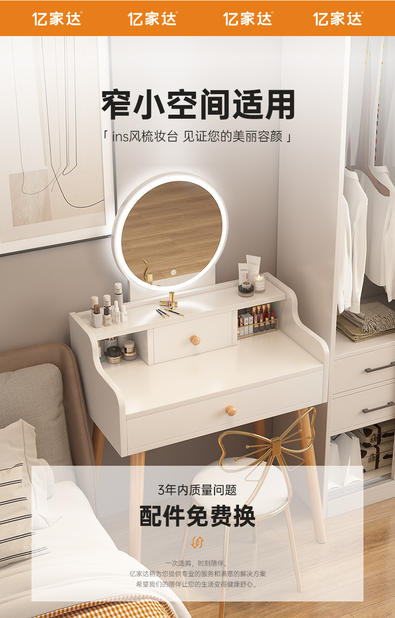 드레싱 테이블 침실 현대 간단한 작은 아파트 메이크업 테이블 메이크업 테이블 2024 새로운 빛 럭셔리 렌탈 정스토어 가기