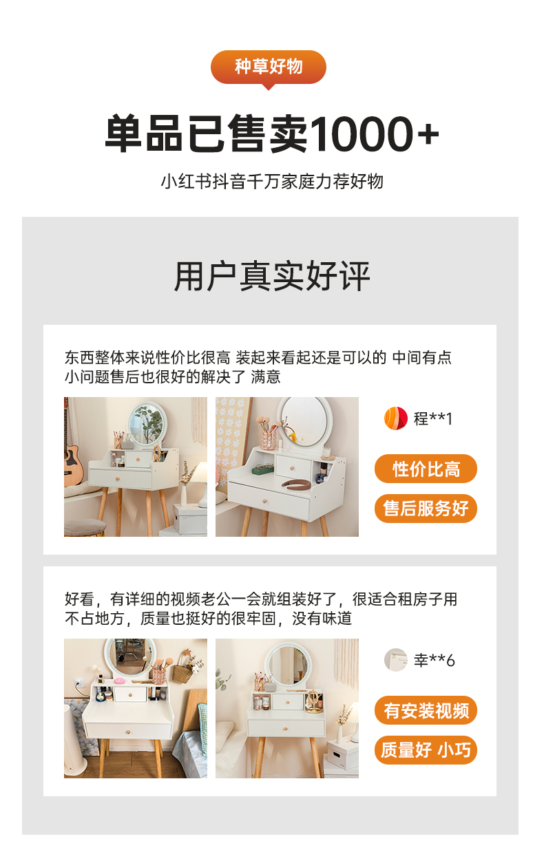 • 【서랍 1개 + 수납장 1개 + LED 조명 + 꽃잎 의자】 따뜻한 흰색 60cm⚑