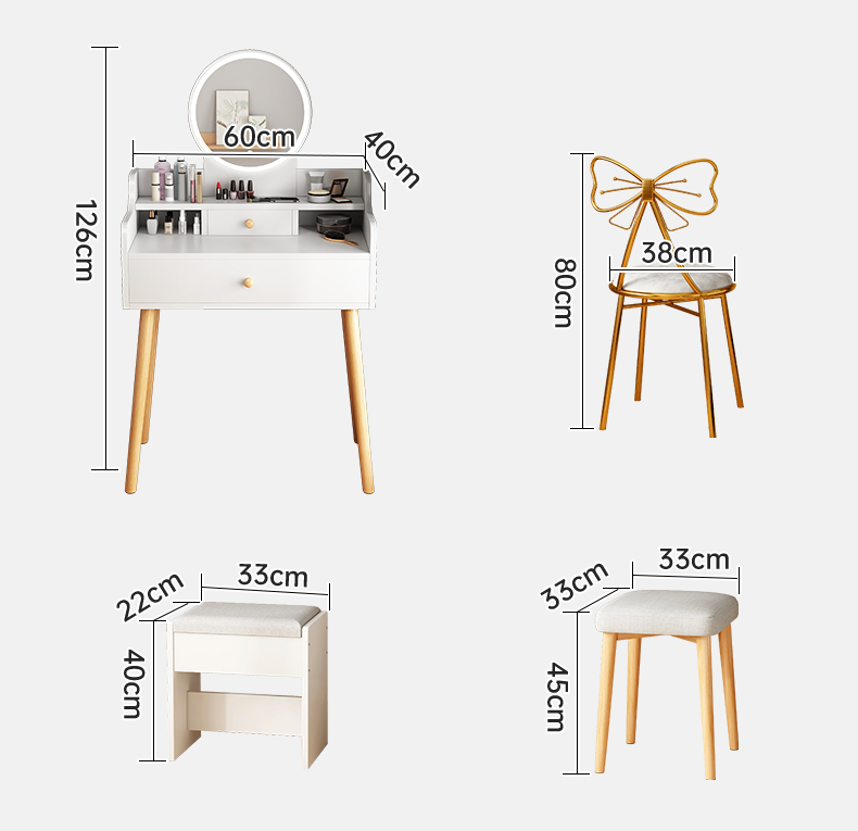 • 【더블 서랍 + LED 조명 + 요정 의자】 따뜻한 흰색 80cm⚑