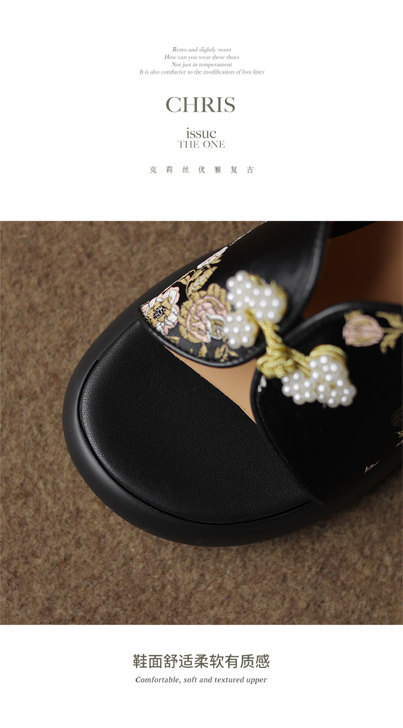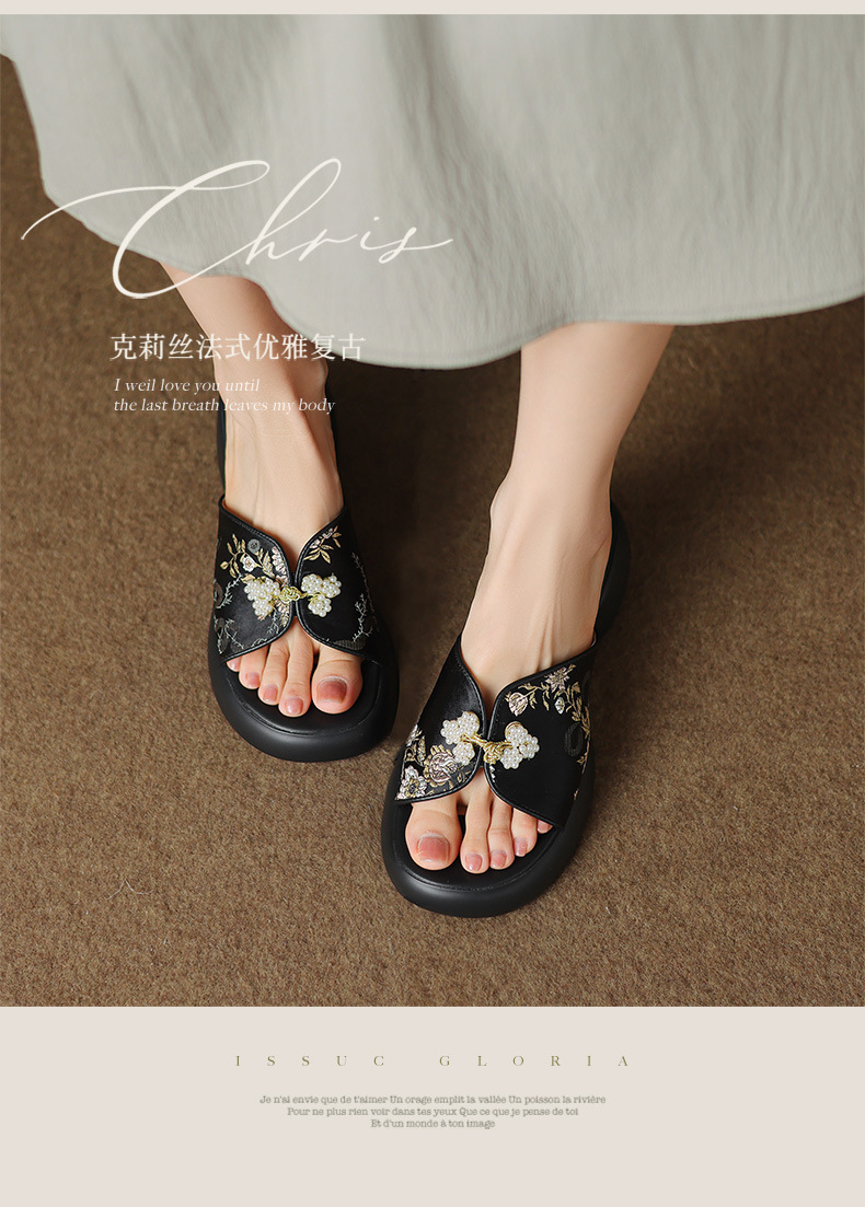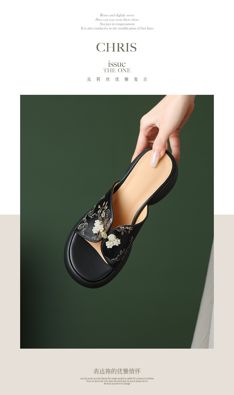 새로운 중국 복고풍 올매치 간단한 캐주얼 오픈 토 슬립 온 샌들 2024 새로운 가벼운 성숙한 통근 샌들