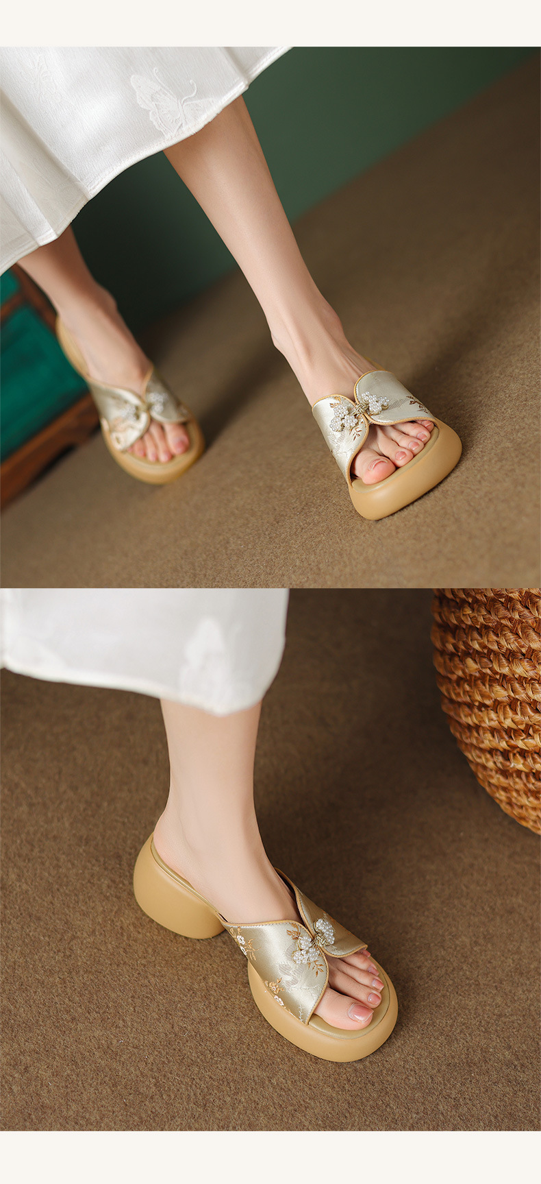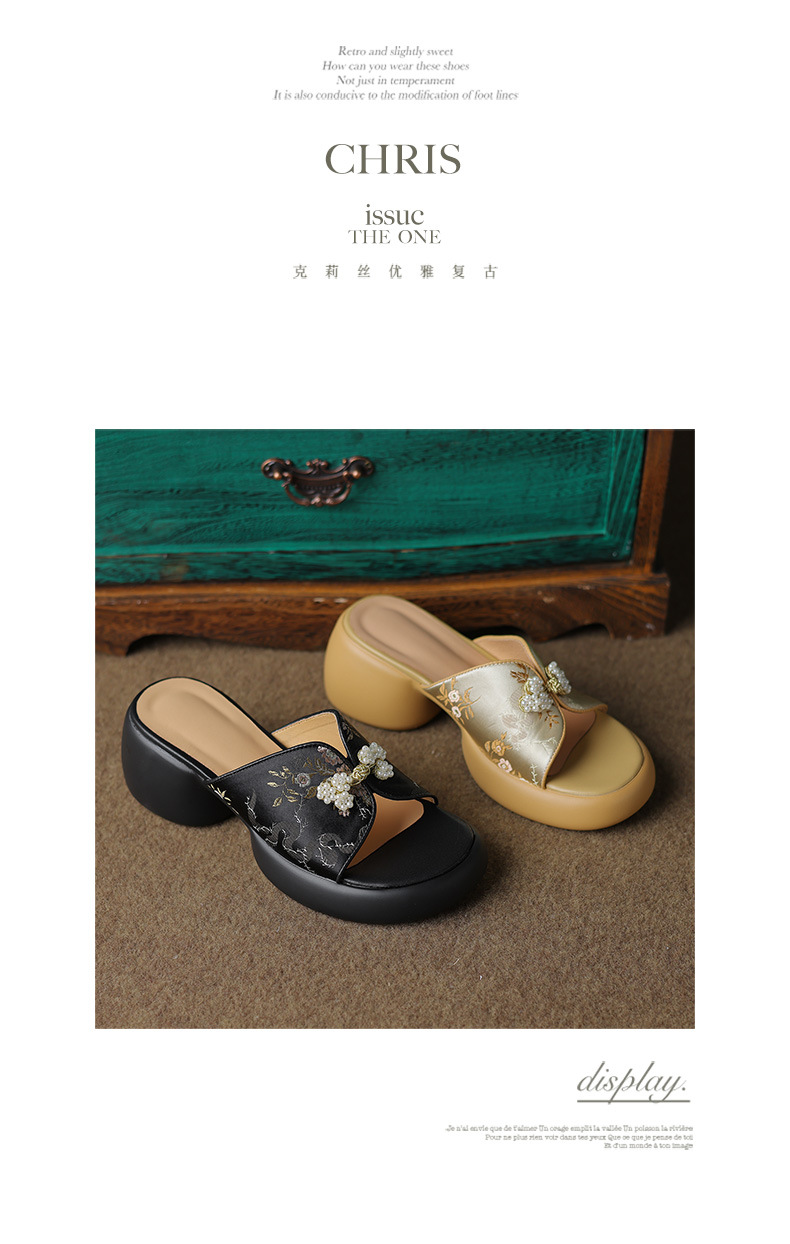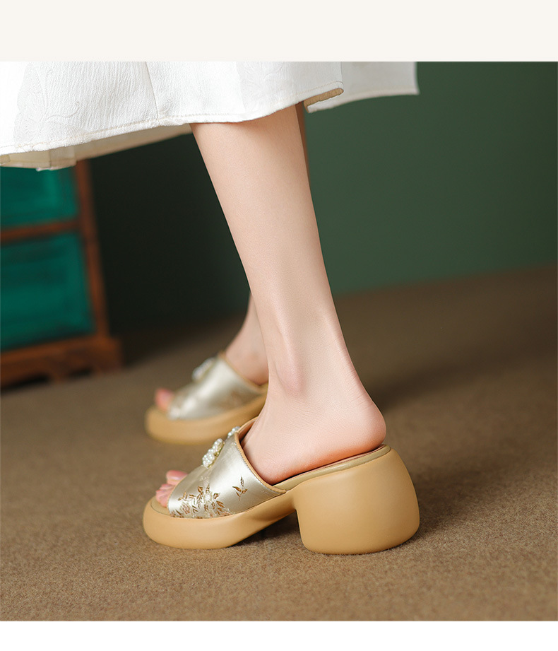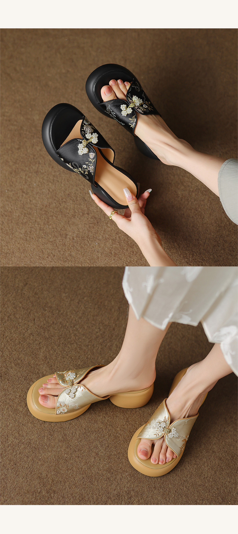 새로운 중국 복고풍 올매치 간단한 캐주얼 오픈 토 슬립 온 샌들 2024 새로운 가벼운 성숙한 통근 샌들