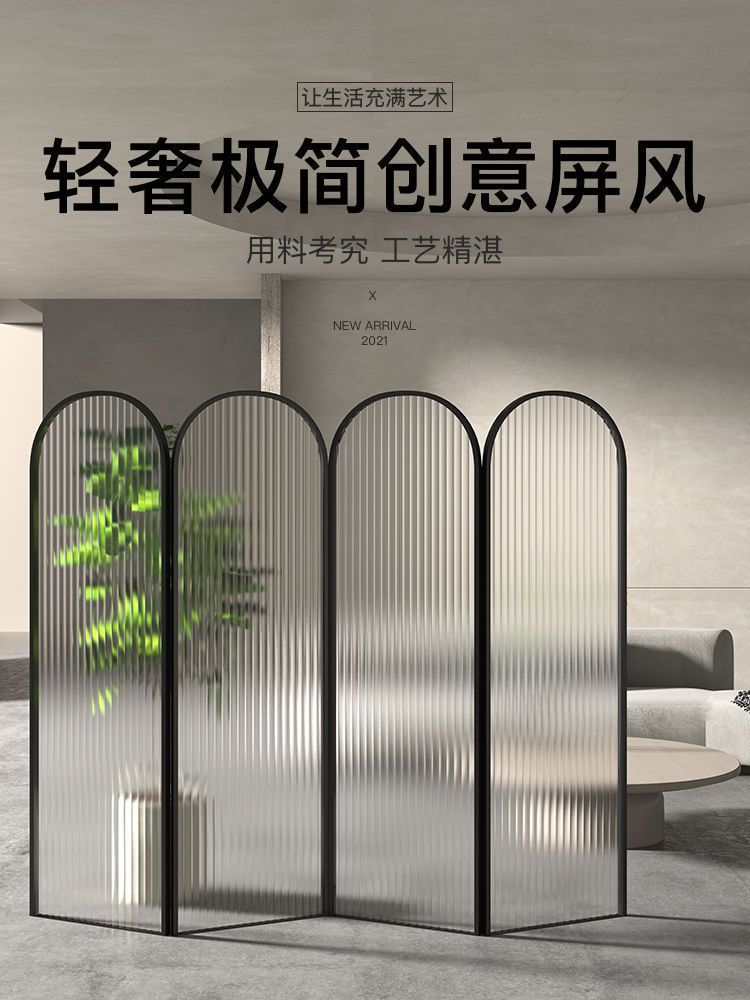 창조적 인 창홍 유리 접이식 스크린 입구 식당 거실 사무실 이동식 접이식 스크린 차단 된 현관 파티션스토어 가기