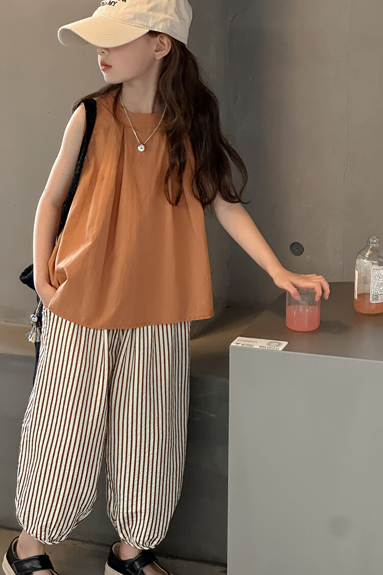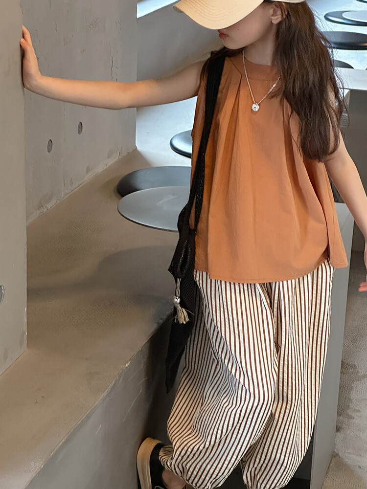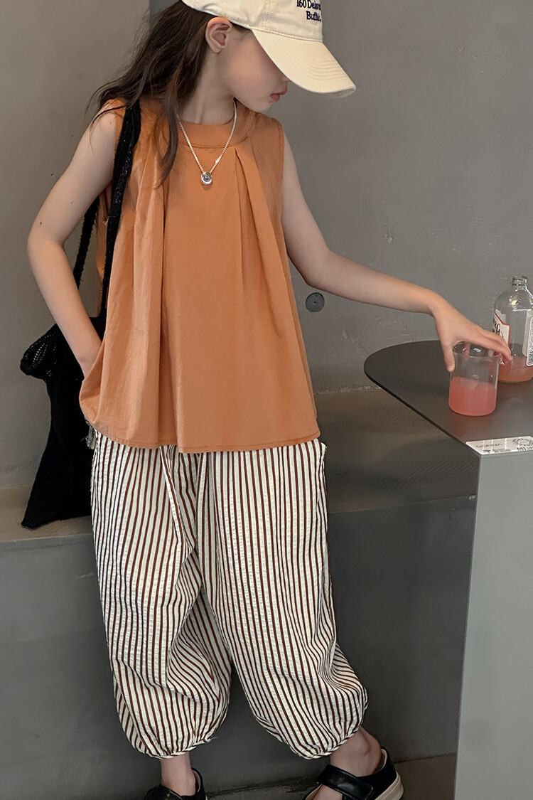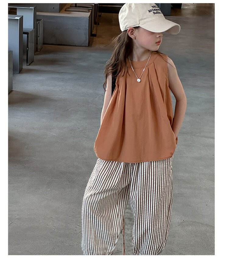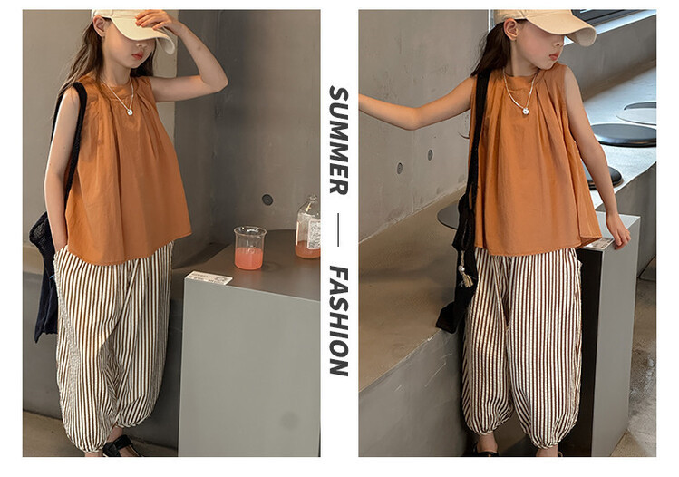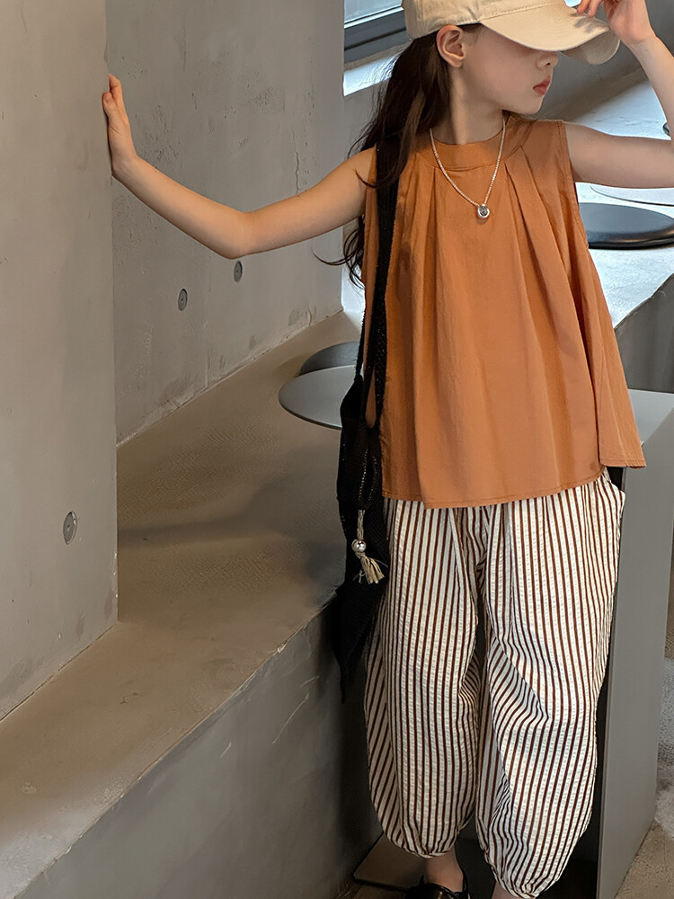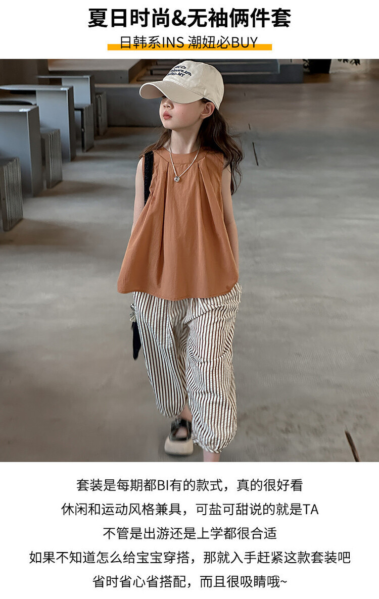 여자 한국 스타일 민소매 세트 2024 여름 새 어린이 옷 소녀 캐주얼 느슨한 여름 인터넷 연예인 투피스 세트스토어 가기