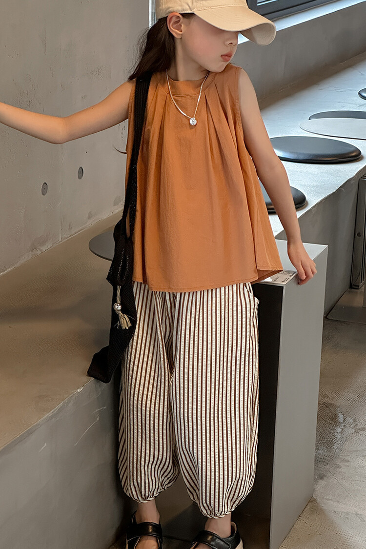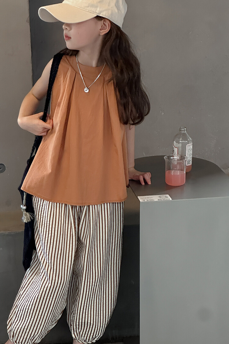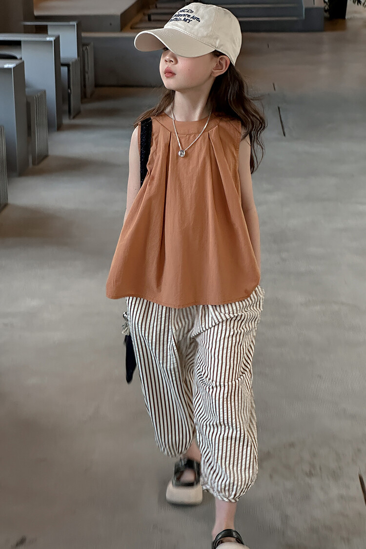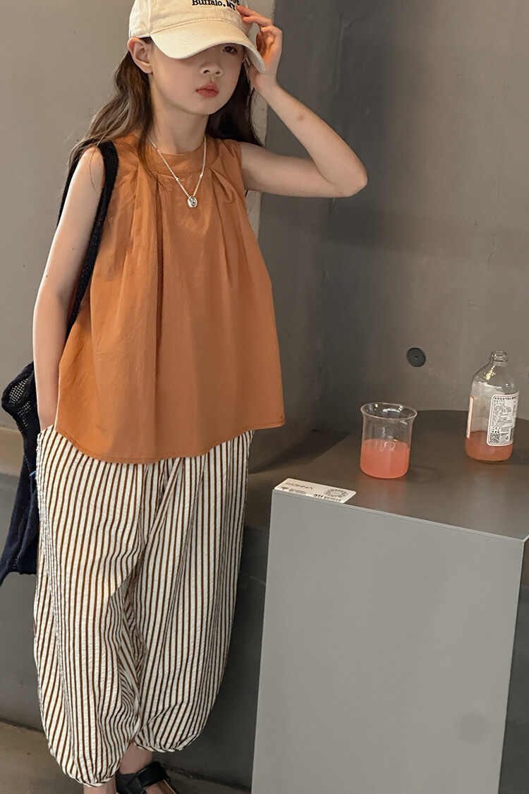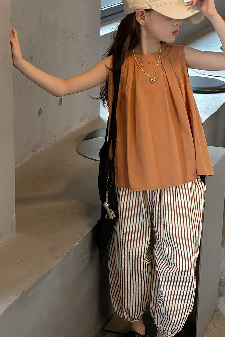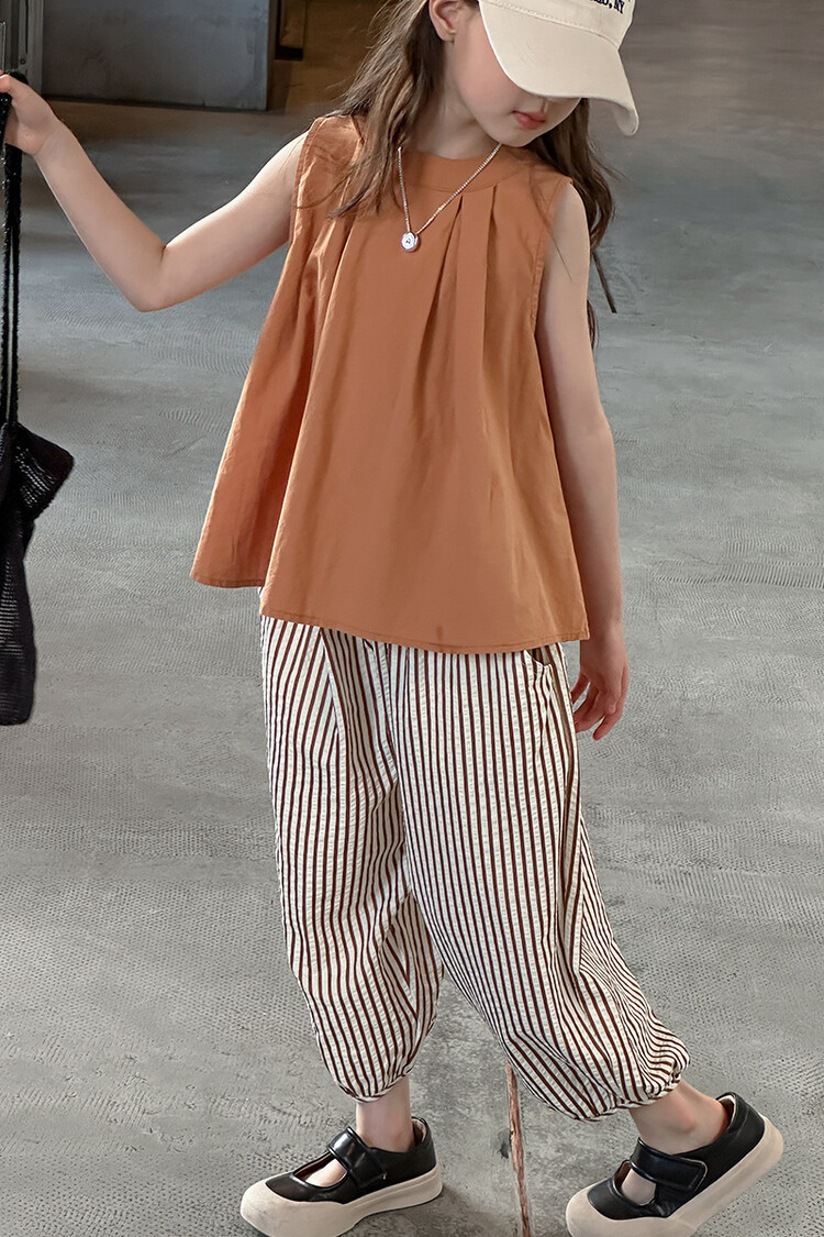 여자 한국 스타일 민소매 세트 2024 여름 새 어린이 옷 소녀 캐주얼 느슨한 여름 인터넷 연예인 투피스 세트스토어 가기