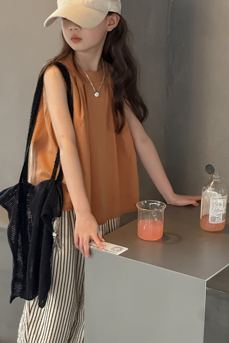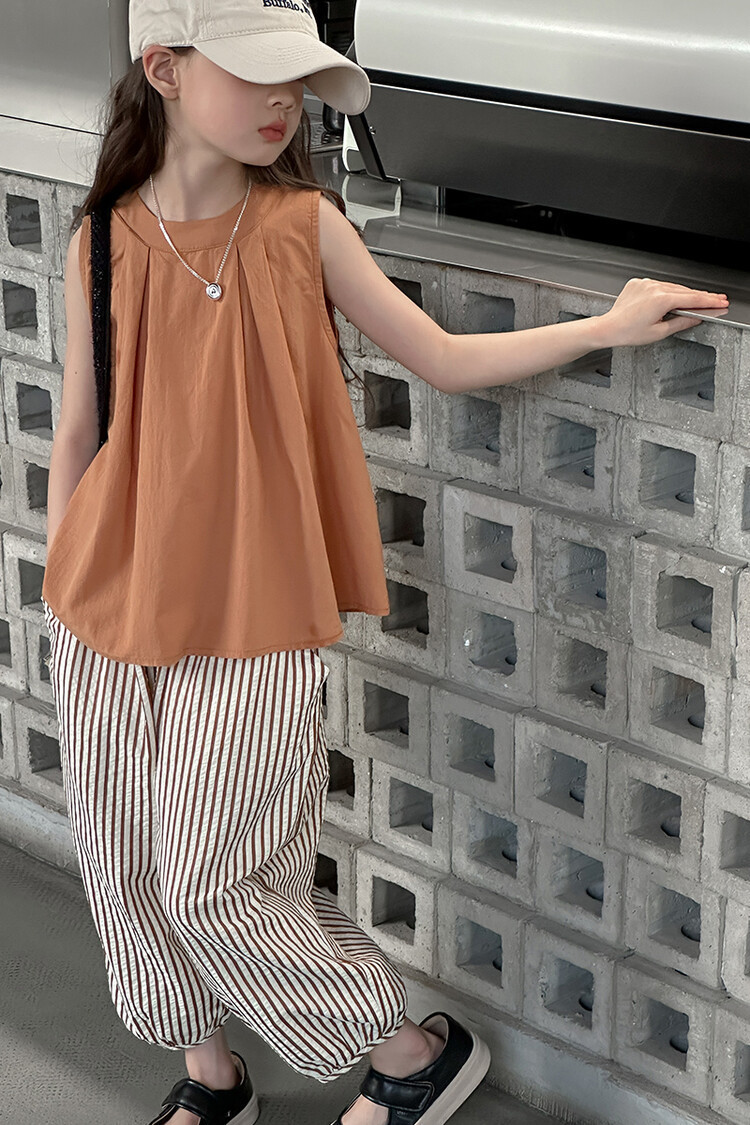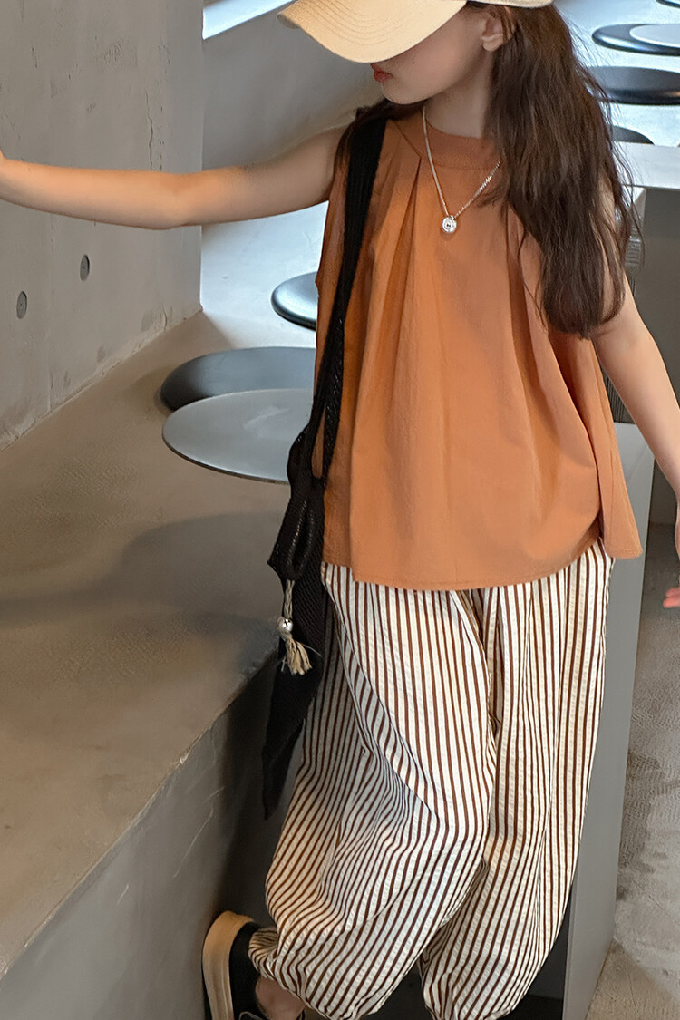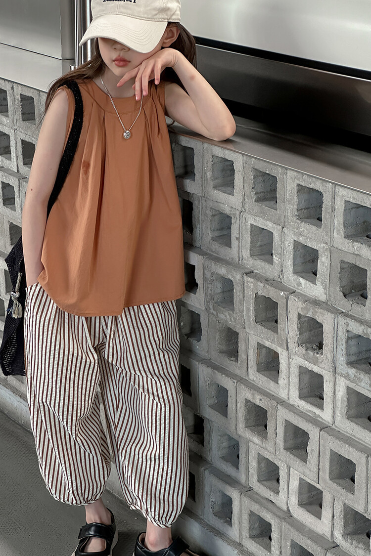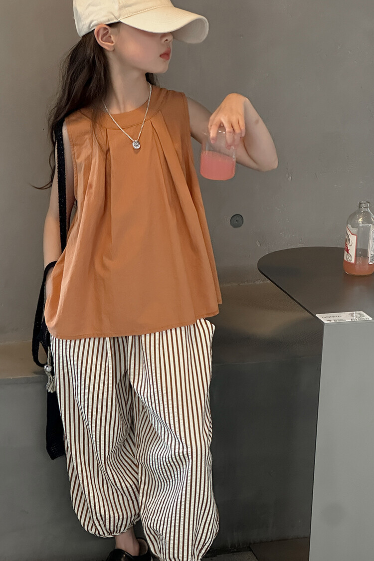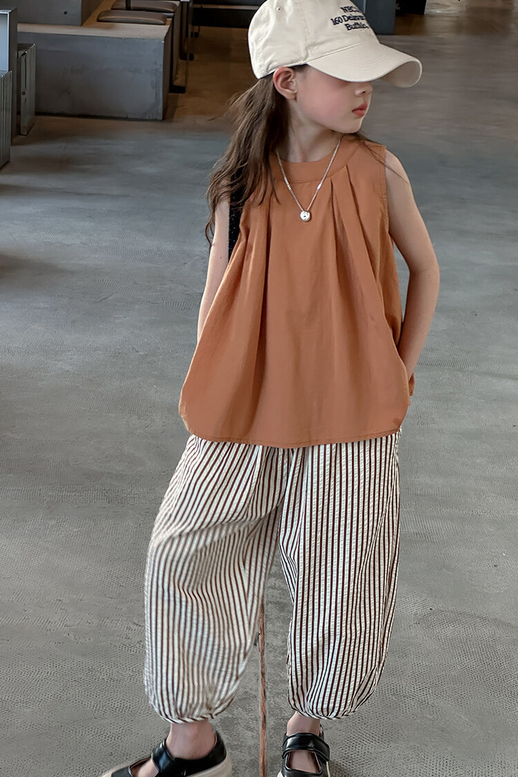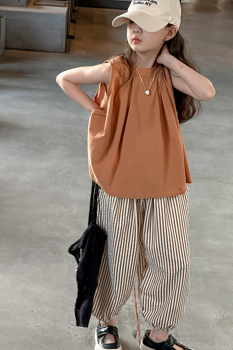 여자 한국 스타일 민소매 세트 2024 여름 새 어린이 옷 소녀 캐주얼 느슨한 여름 인터넷 연예인 투피스 세트스토어 가기