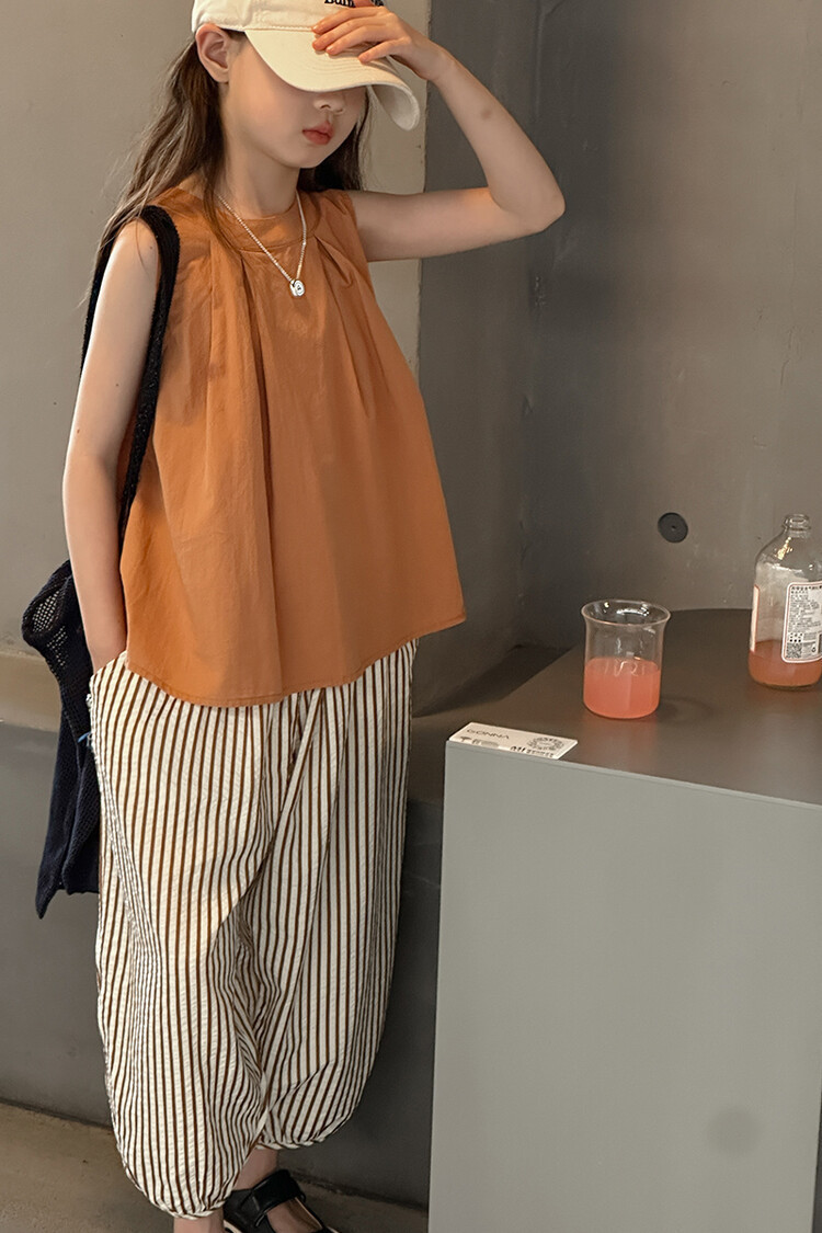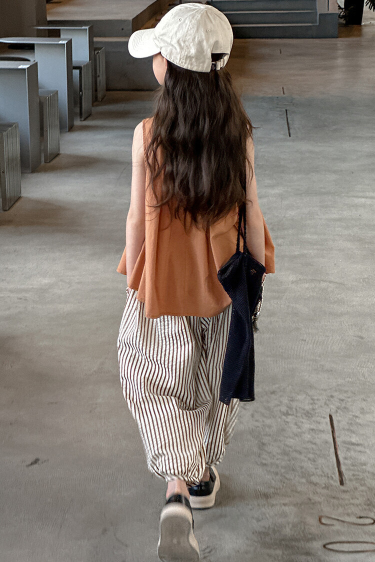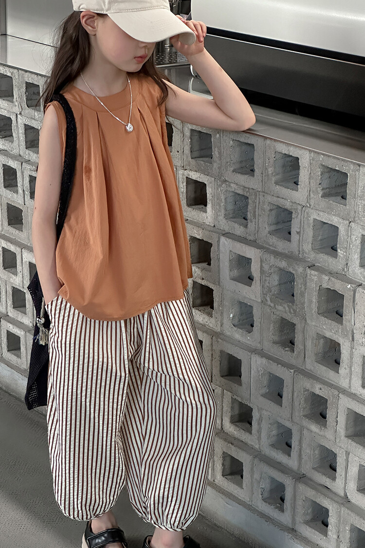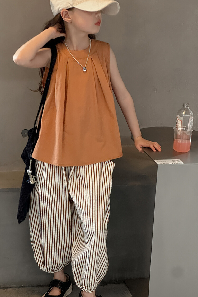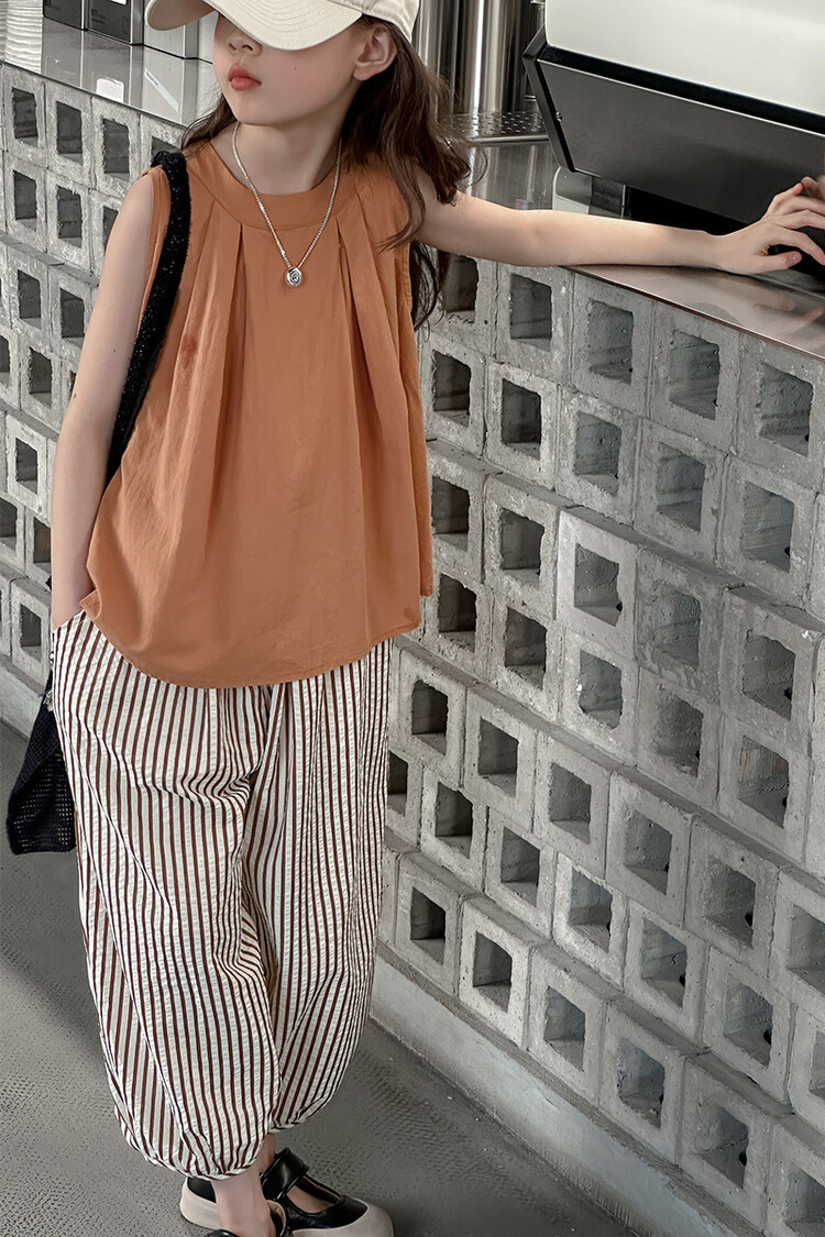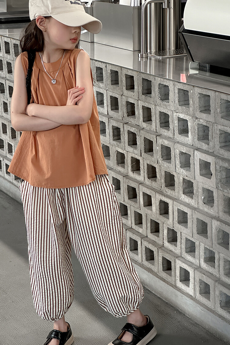 여자 한국 스타일 민소매 세트 2024 여름 새 어린이 옷 소녀 캐주얼 느슨한 여름 인터넷 연예인 투피스 세트스토어 가기