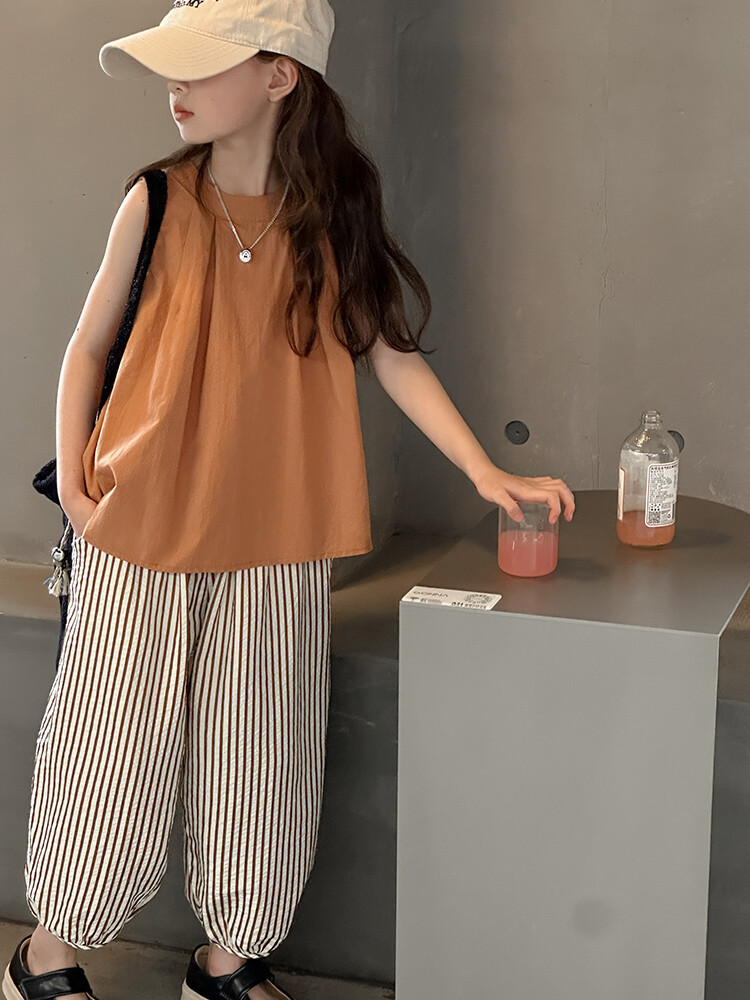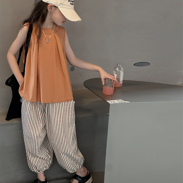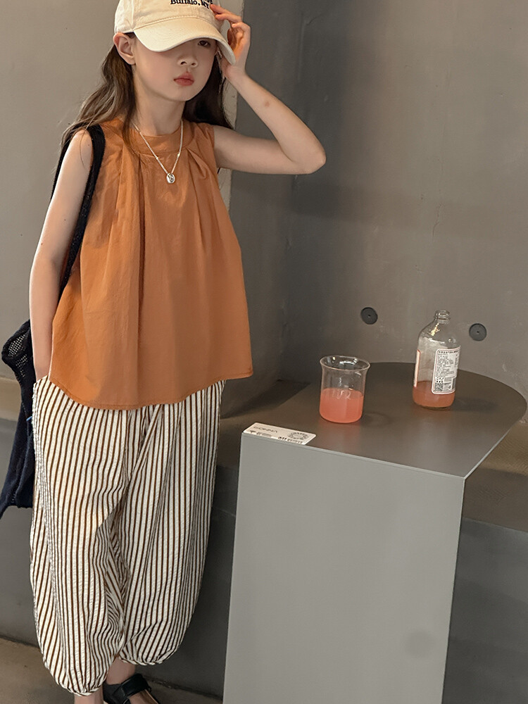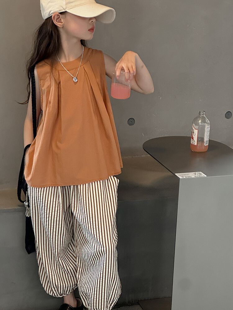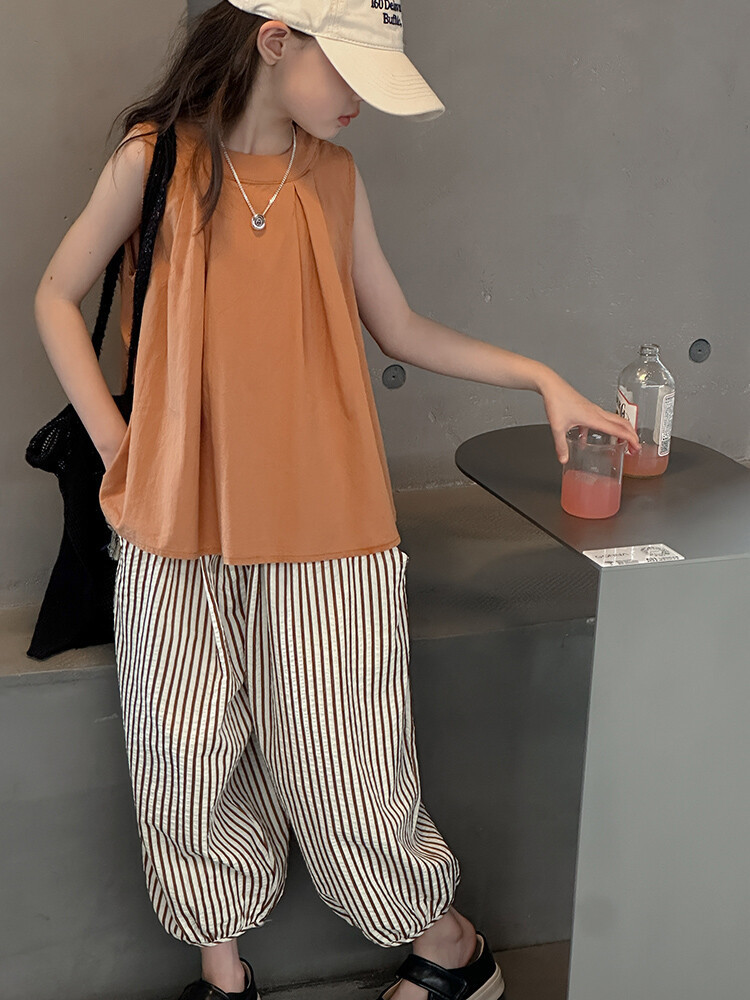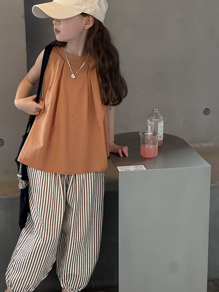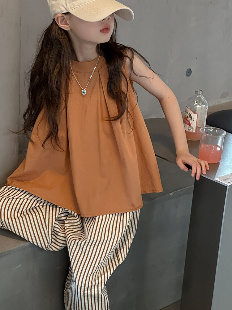 여자 한국 스타일 민소매 세트 2024 여름 새 어린이 옷 소녀 캐주얼 느슨한 여름 인터넷 연예인 투피스 세트