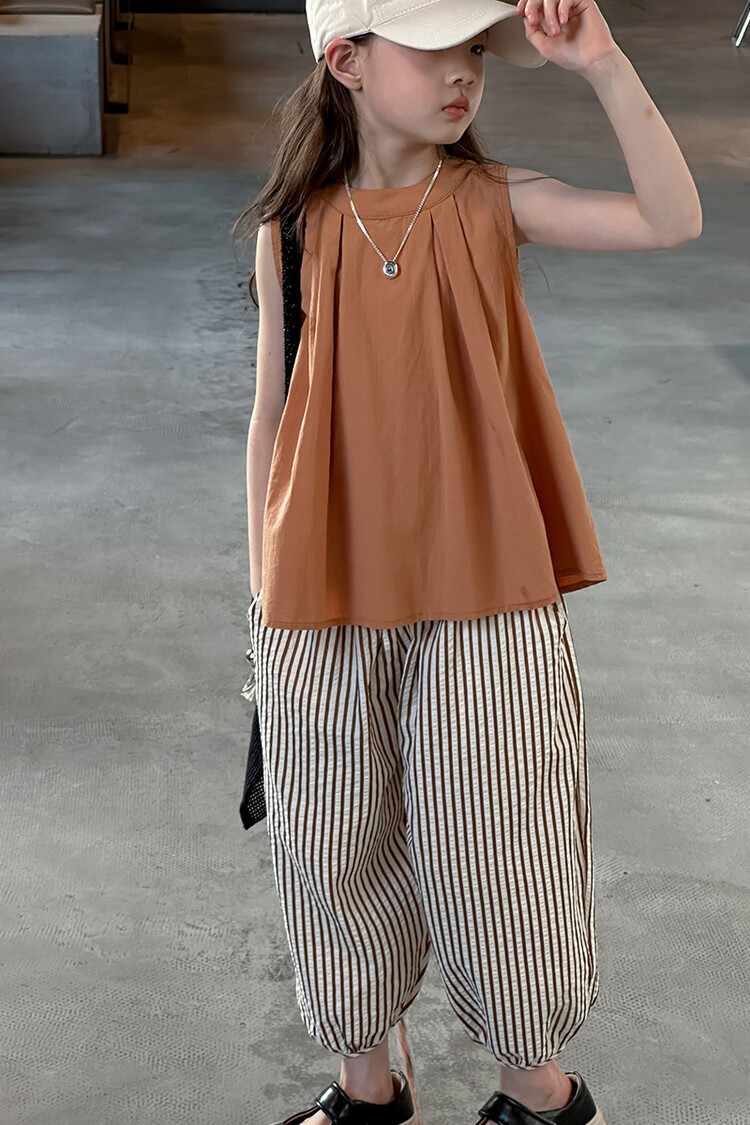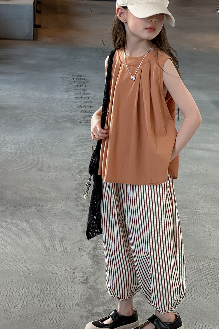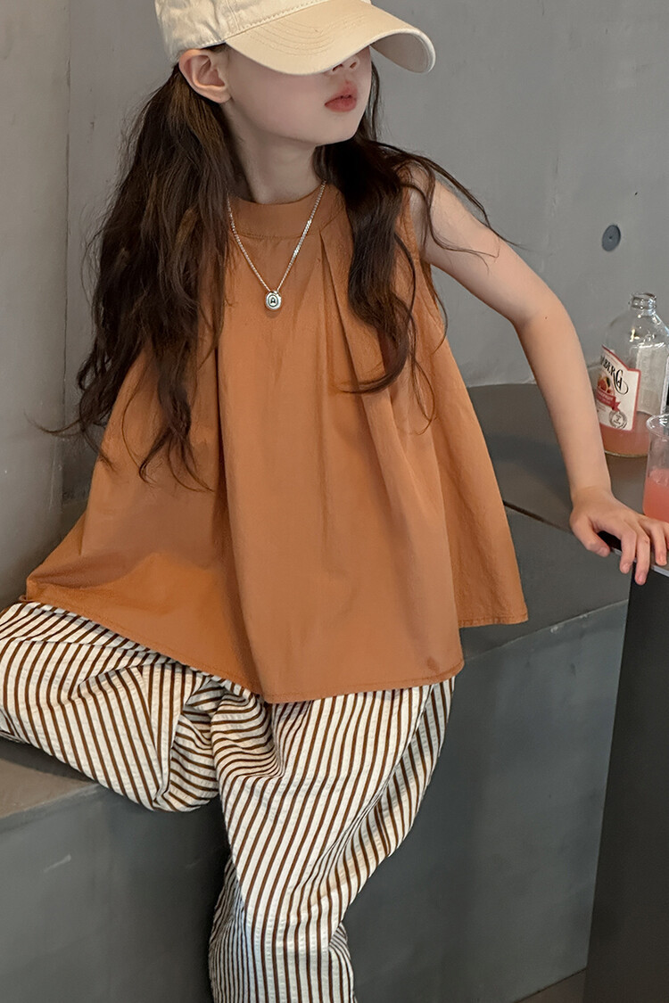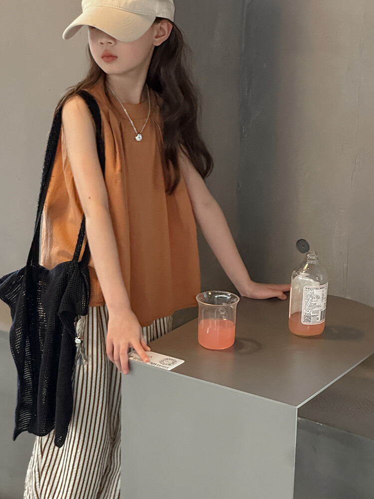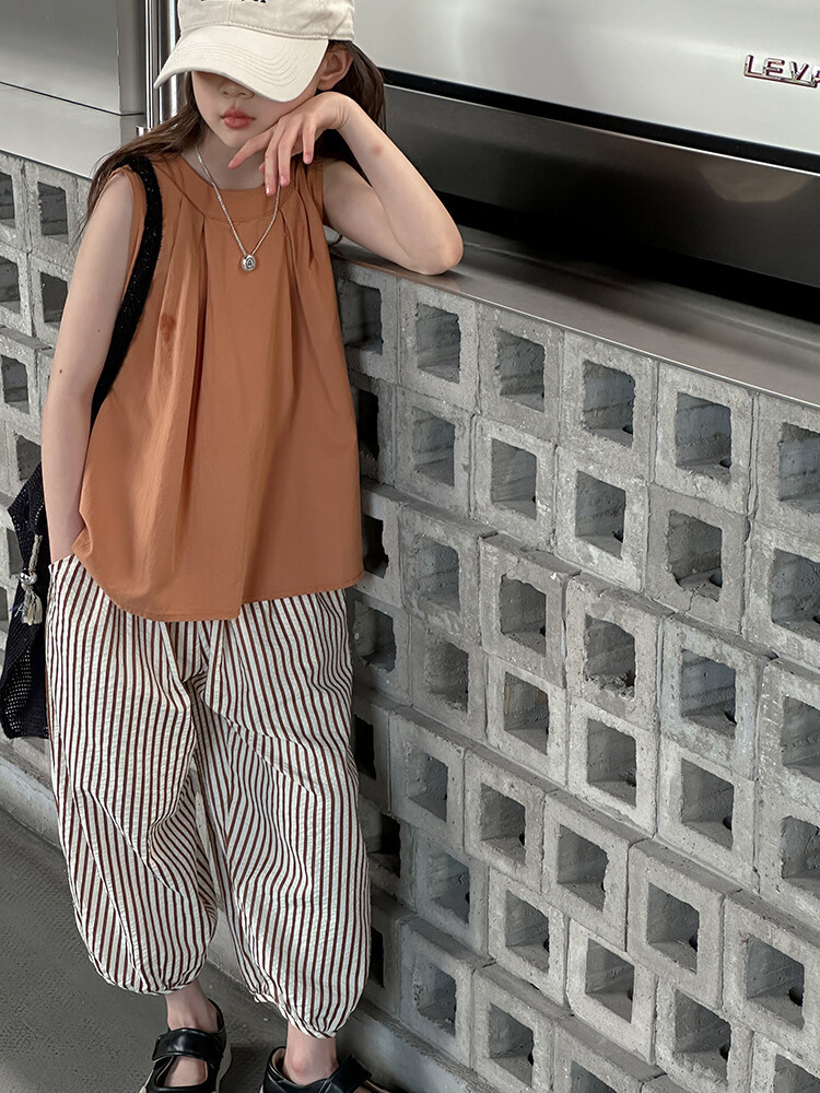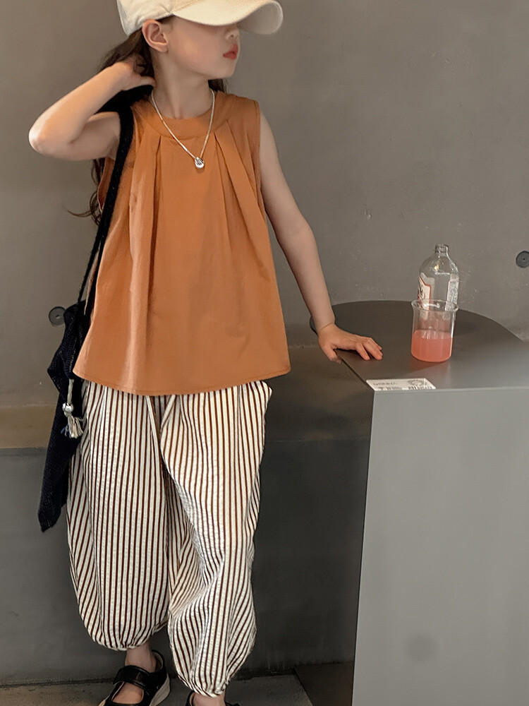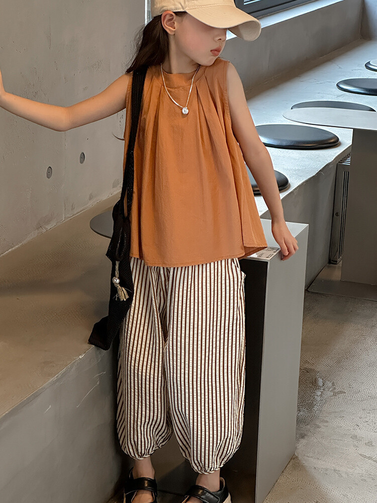 여자 한국 스타일 민소매 세트 2024 여름 새 어린이 옷 소녀 캐주얼 느슨한 여름 인터넷 연예인 투피스 세트