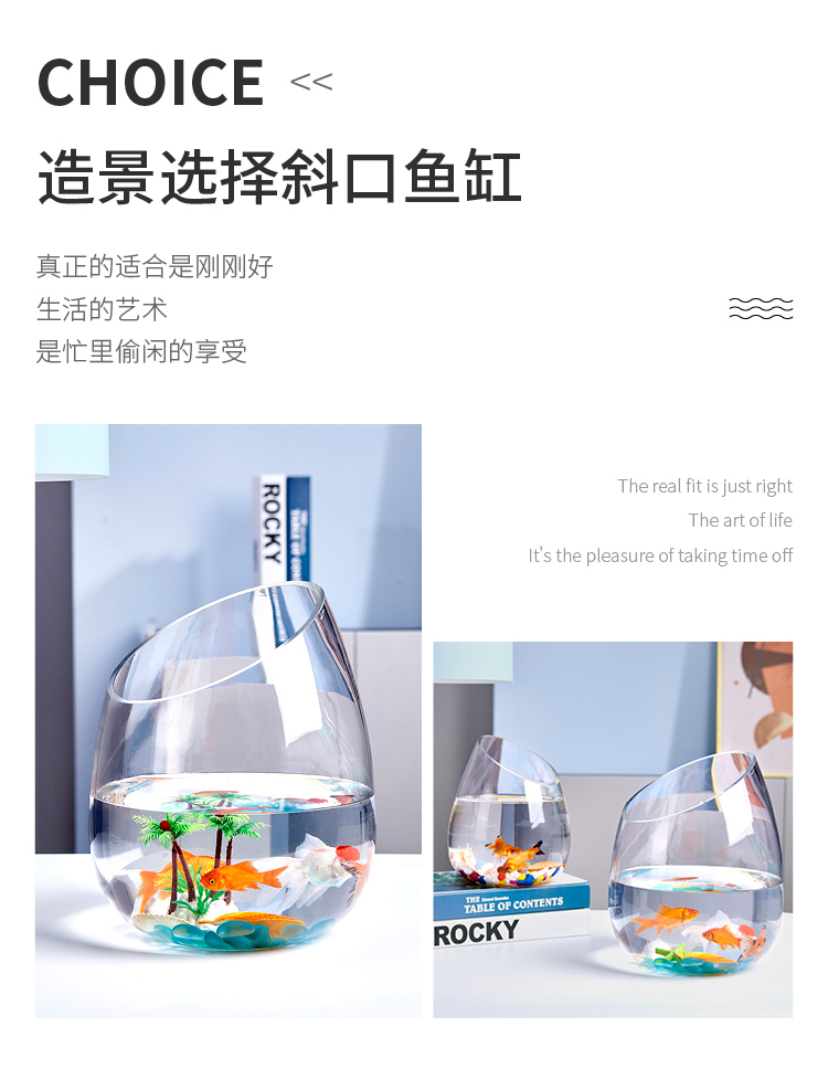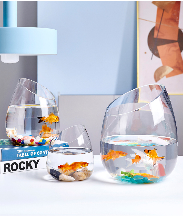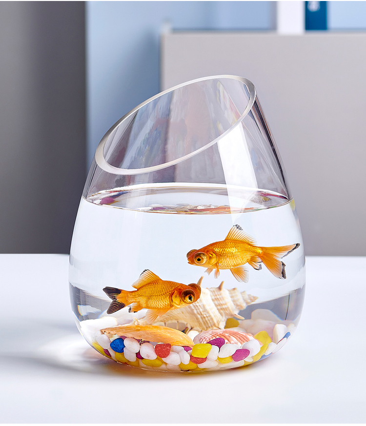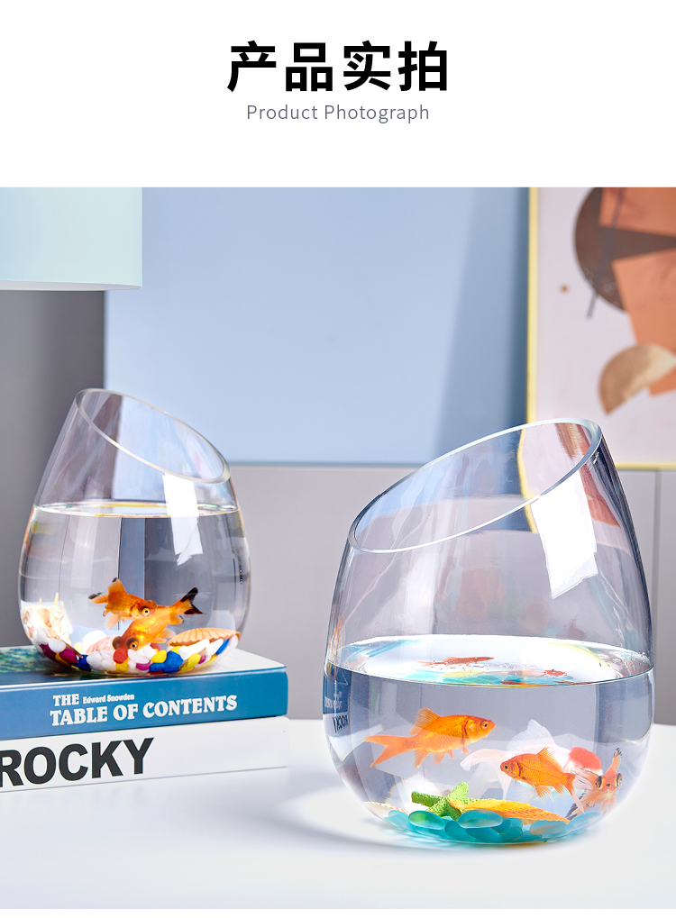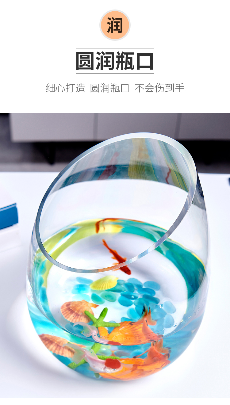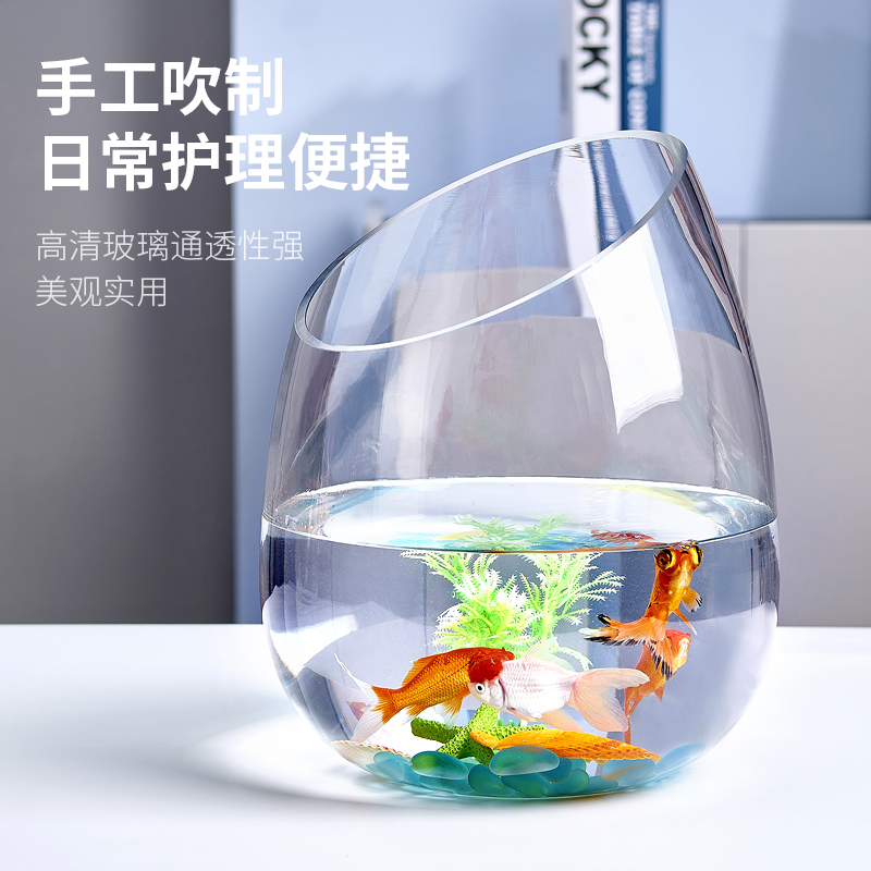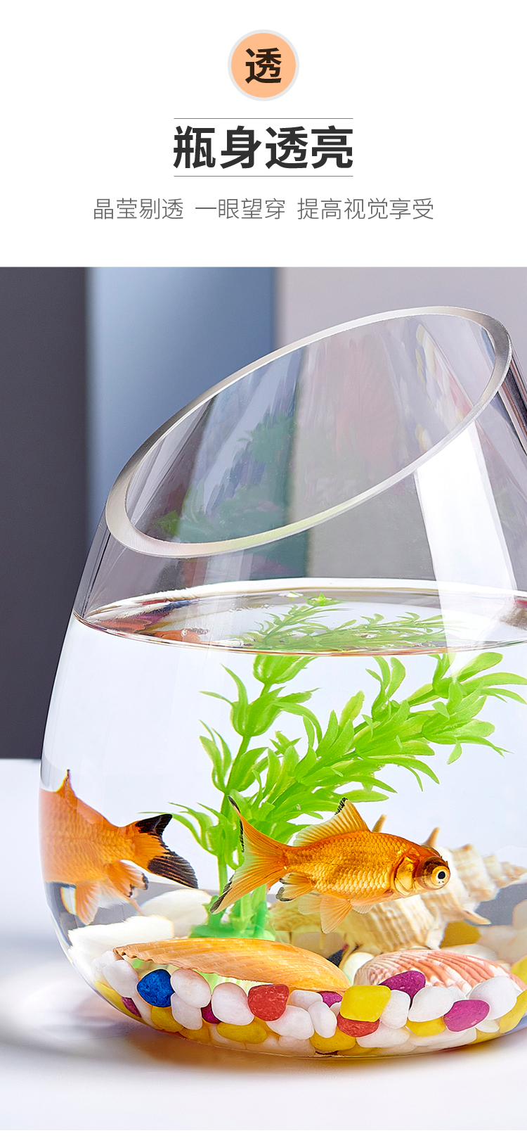 사무실 작은 물고기 탱크 두꺼운 투명 유리 거북이 탱크 거실 가정용 데스크탑 라운드 작은 진센 성스토어 가기