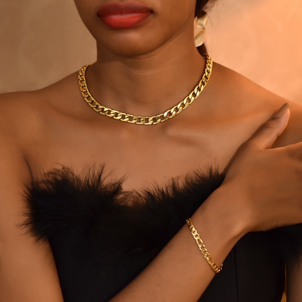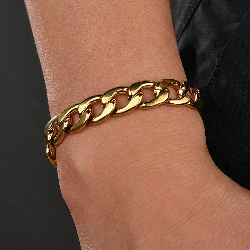 남성과 여성을위한 티타늄 스틸 페이디없는 개성 과장된 플랫 체인 두꺼운 체인 팔찌 유럽과 미국의 Ins 스타일 틈새 힙합 커플 넥 체인스토어 가기