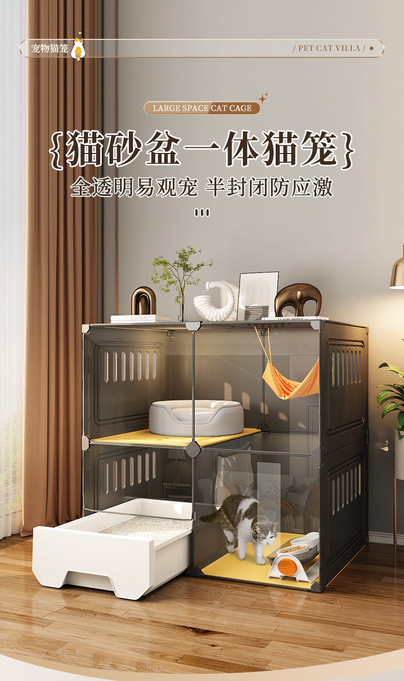 고양이 케이지, 고양이 화장실, 고양이 모래통 일체형 가정용 실내 공간 절약형 이층 고양이 빌라, 고양이 집, 고양이 쉼터