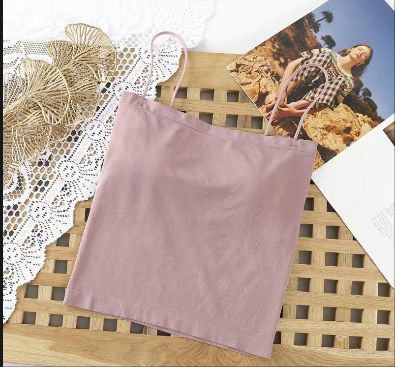 여름 1806 단색 끈나시, 가슴 패드 내장으로 옆가슴 커버, 통기성 좋고 외출용으로도 착용 가능한 아름다운 등라인의 숏탑, 섹시한 여성용 상의