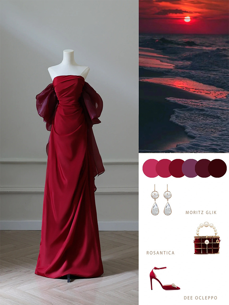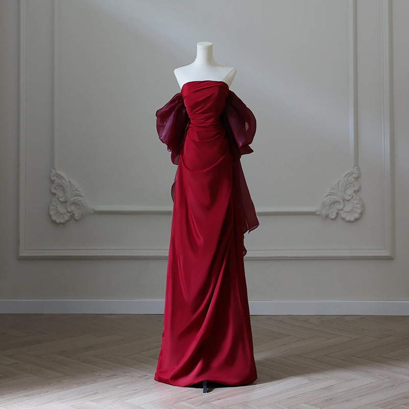 토스트 원피스 여성 신부 고급 감각 오프 숄더 웨딩 기질 백도어 원피스 레드 약혼 튜브 최고 저녁 원피스 모닝 가운