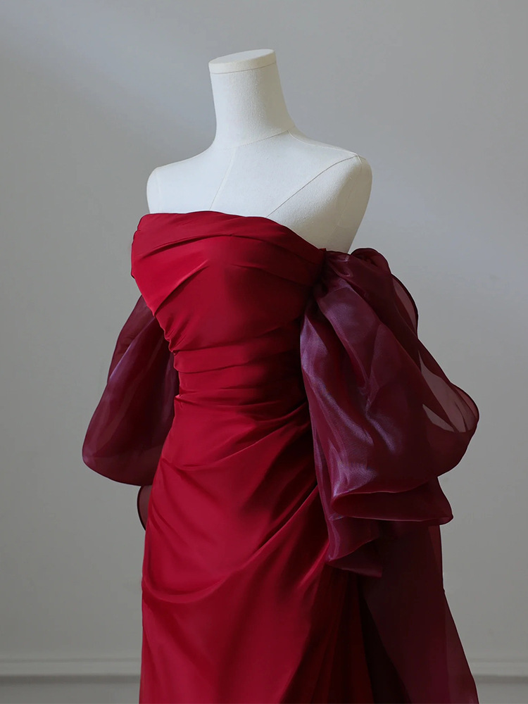 토스트 원피스 여성 신부 고급 감각 오프 숄더 웨딩 기질 백도어 원피스 레드 약혼 튜브 최고 저녁 원피스 모닝 가운스토어 가기