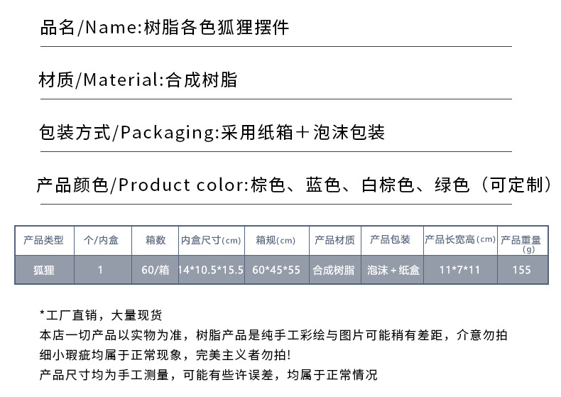 本店一切产品以实物为准,树脂产品是纯手工彩绘与图片可能稍有差距,介意勿拍