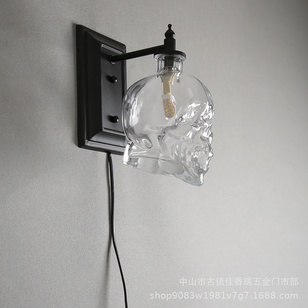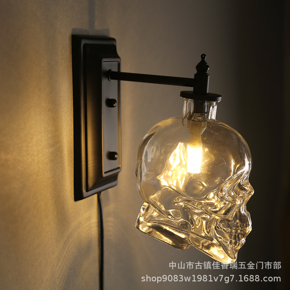 국경 간 레트로 산업 스타일 해골 와인 병 벽 램프 샹들리에 개인화 된 창조적 인 바 카페 침실 벽 램프